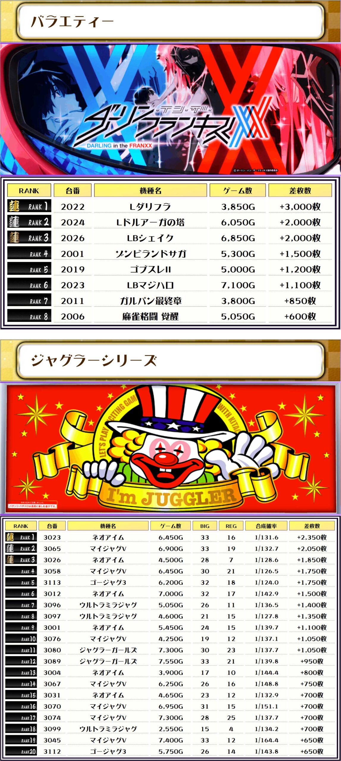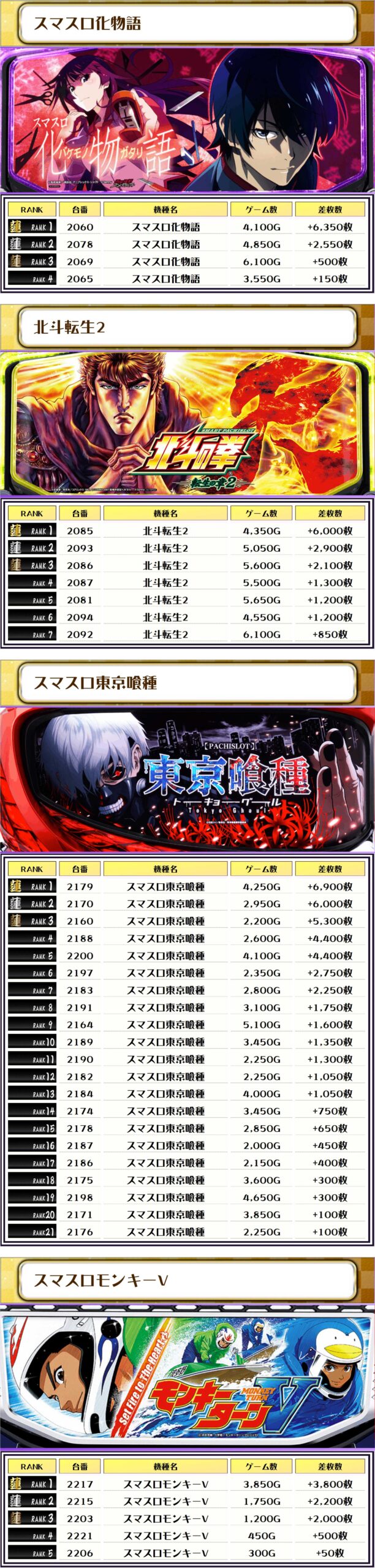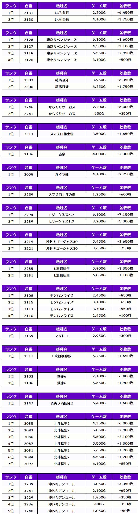 その他機種の差枚ランキングはコチラ