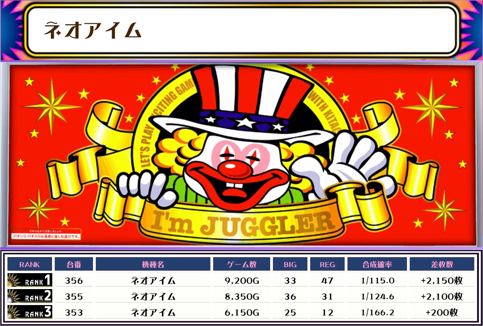 今回はジャグラーシリーズから多くの優秀台が確認できましたね✨