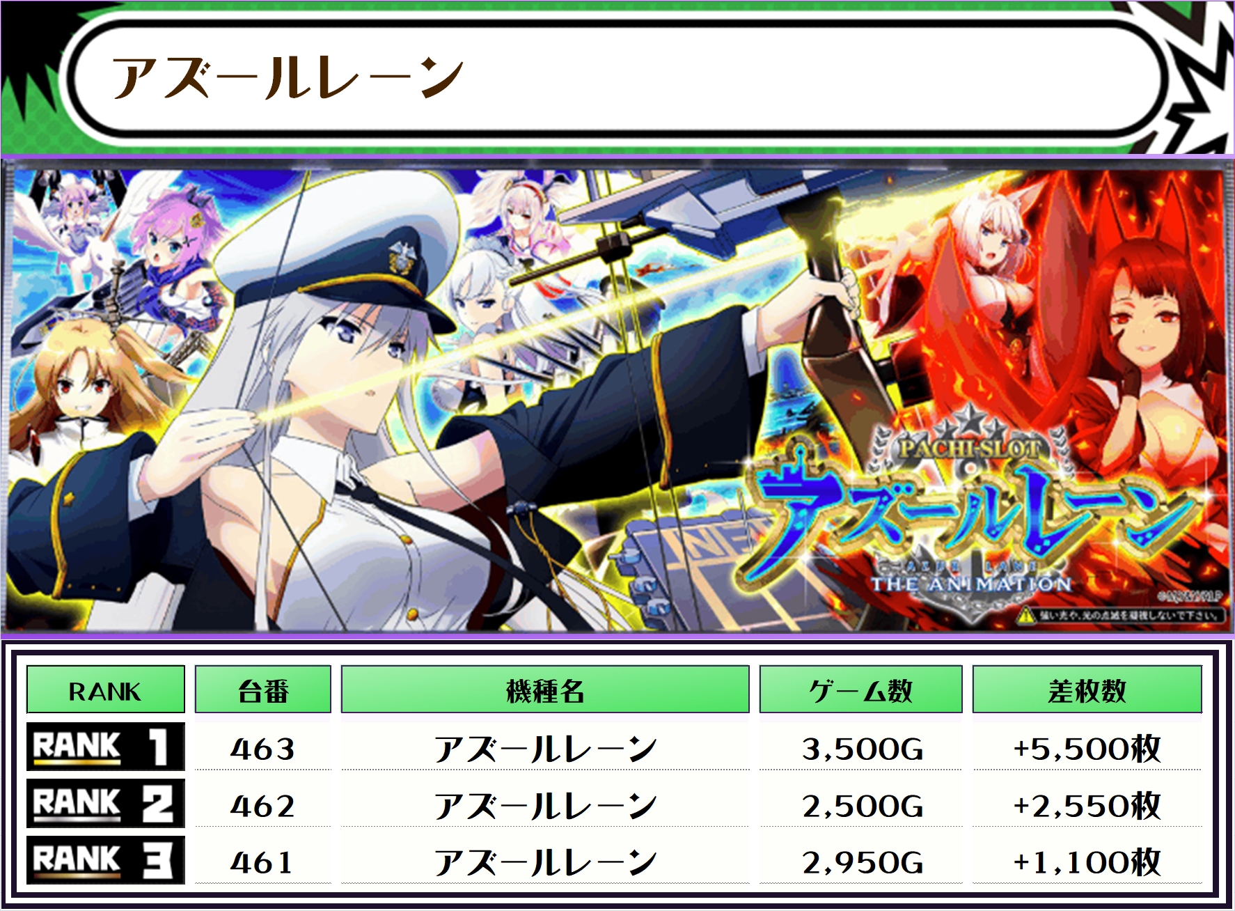 また、アズレンは3台全てがプラス差枚で全台系の雰囲気が出ていたような…🔍 SBJやスマスロ北斗の拳のシマは半数近くがプラス差枚とこちらも目立っていましたね👏👏👏