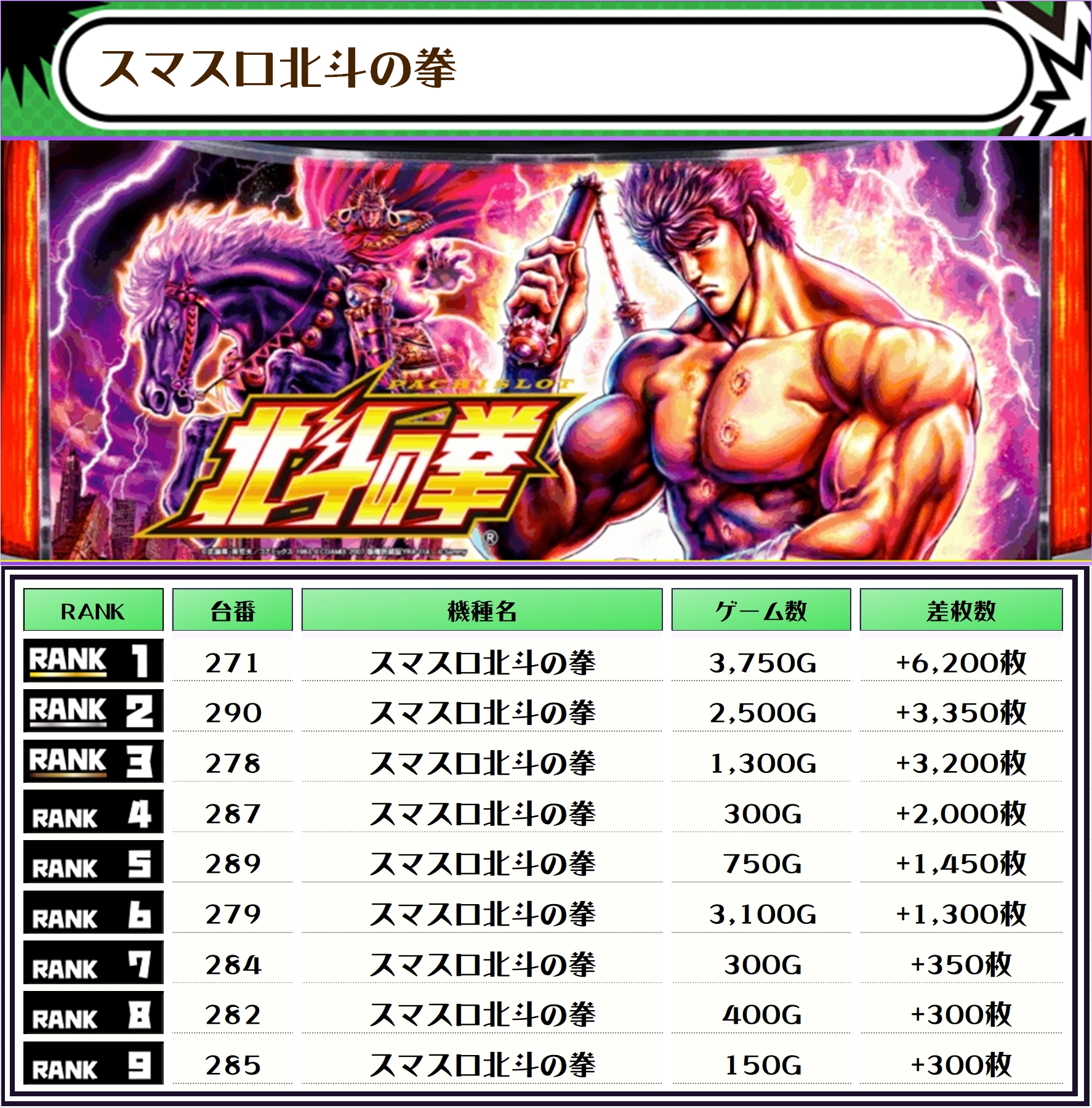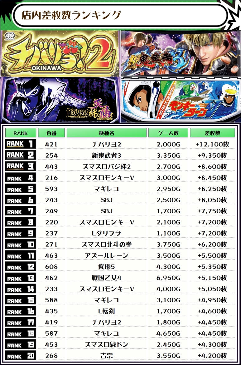 そして、この日全台を対象とした差枚ランキングがこちらになりますっ👍