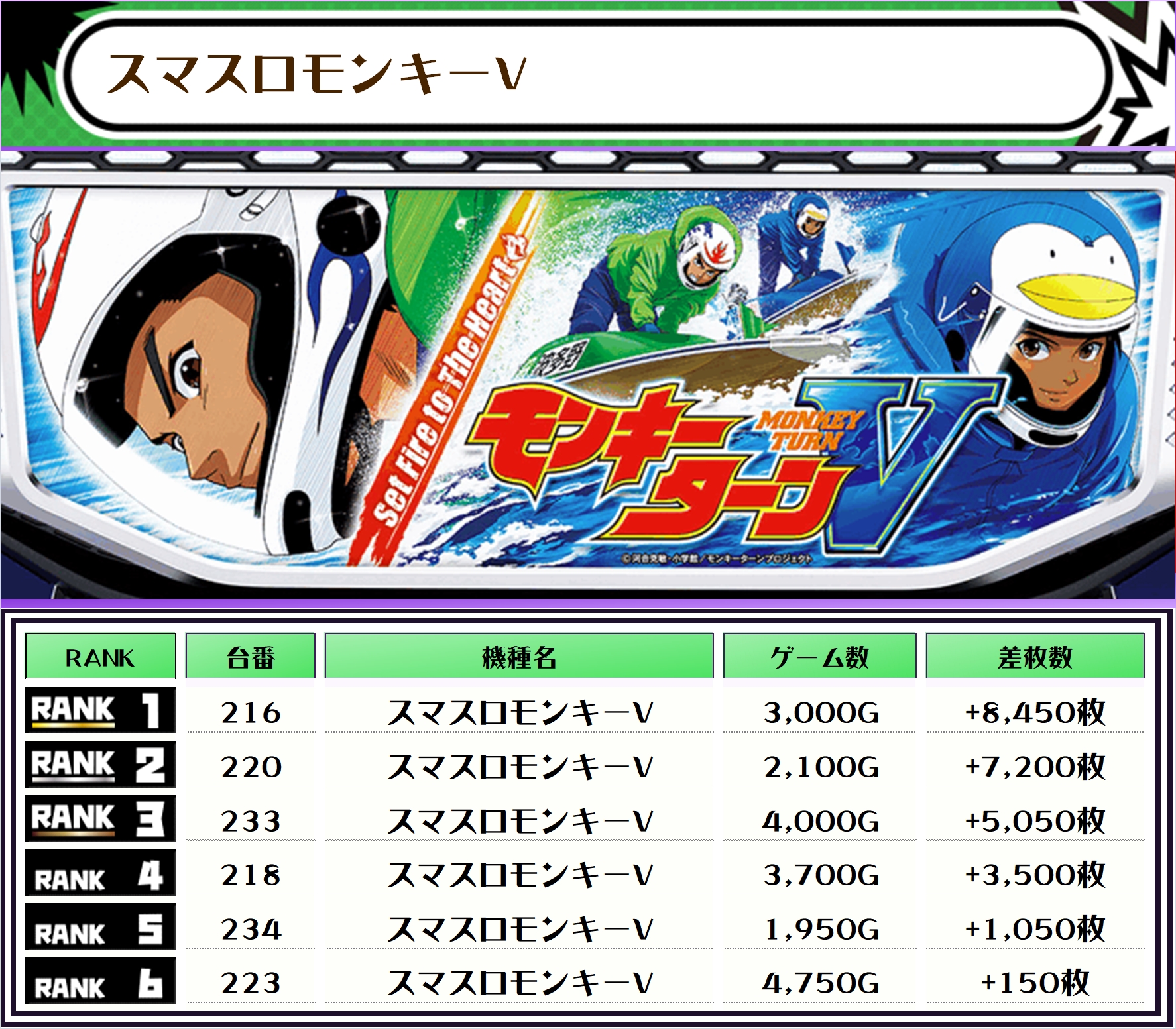 2位は【新鬼武者3・254番台】の+9,350枚、3位には【スマスロバジ絆2・443番台】の+8,600枚がランクインっ🏆🏆🏆🏆