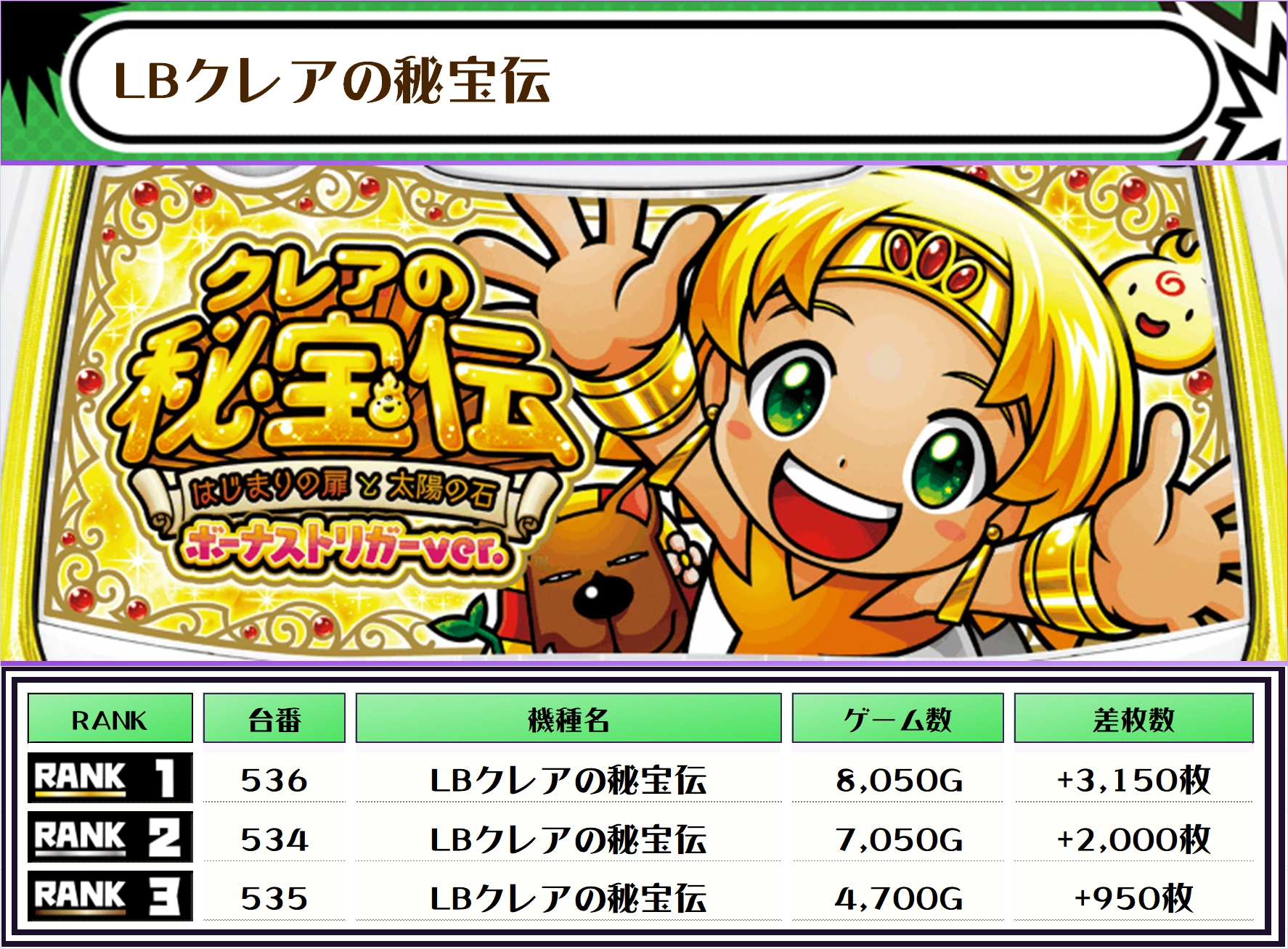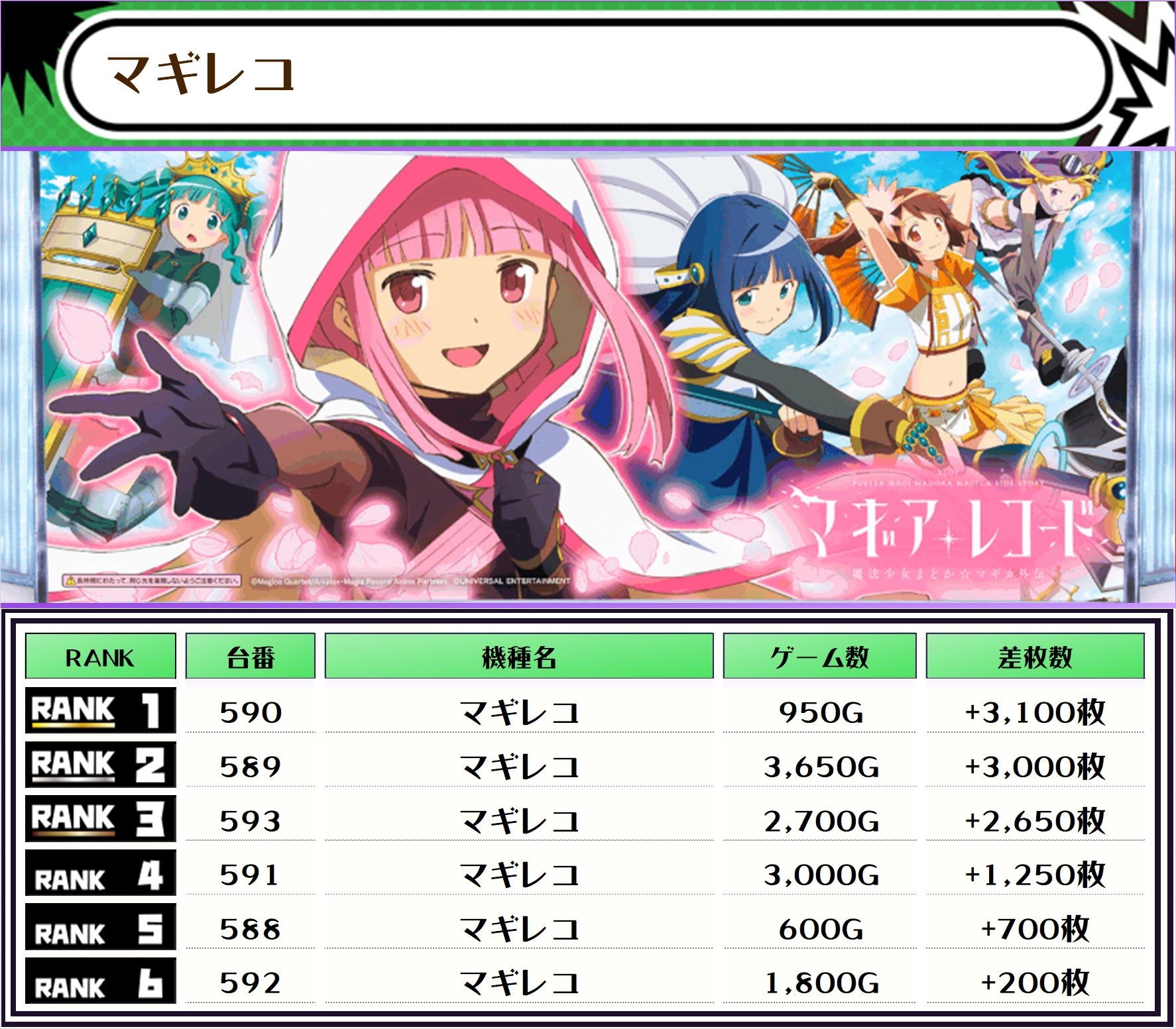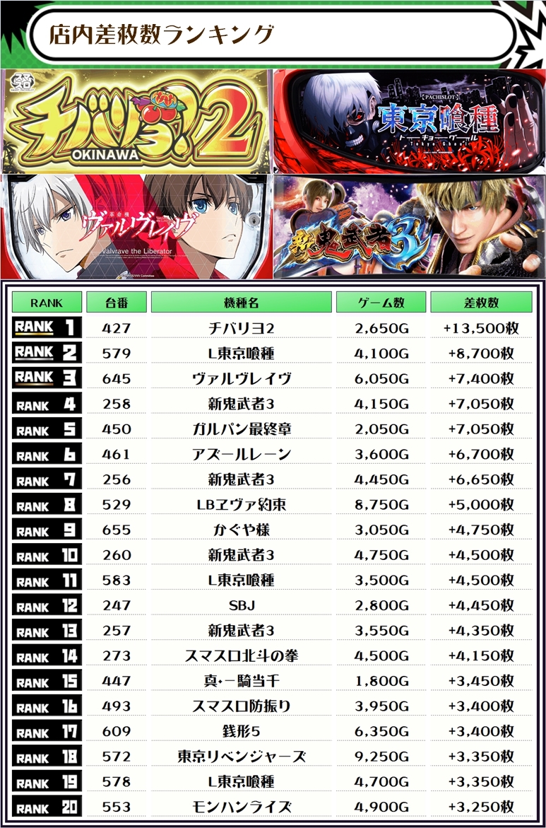 そして、この日全台を対象とした差枚ランキングがこちらになりますっ👍