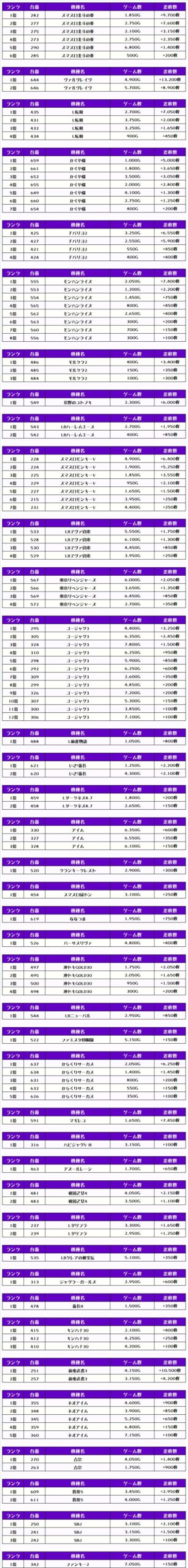 それでは、この日の【機種別差枚ランキング】を見ていきましょう❗️