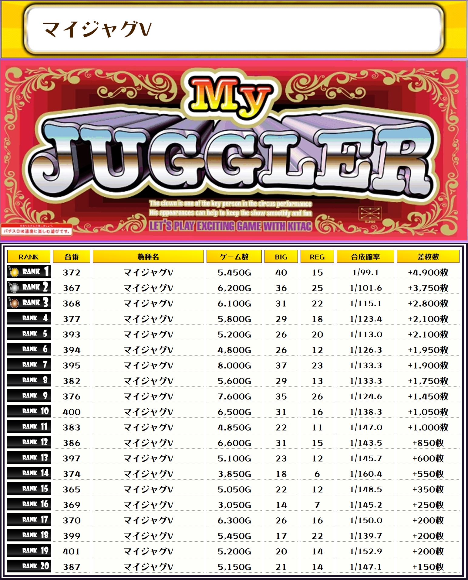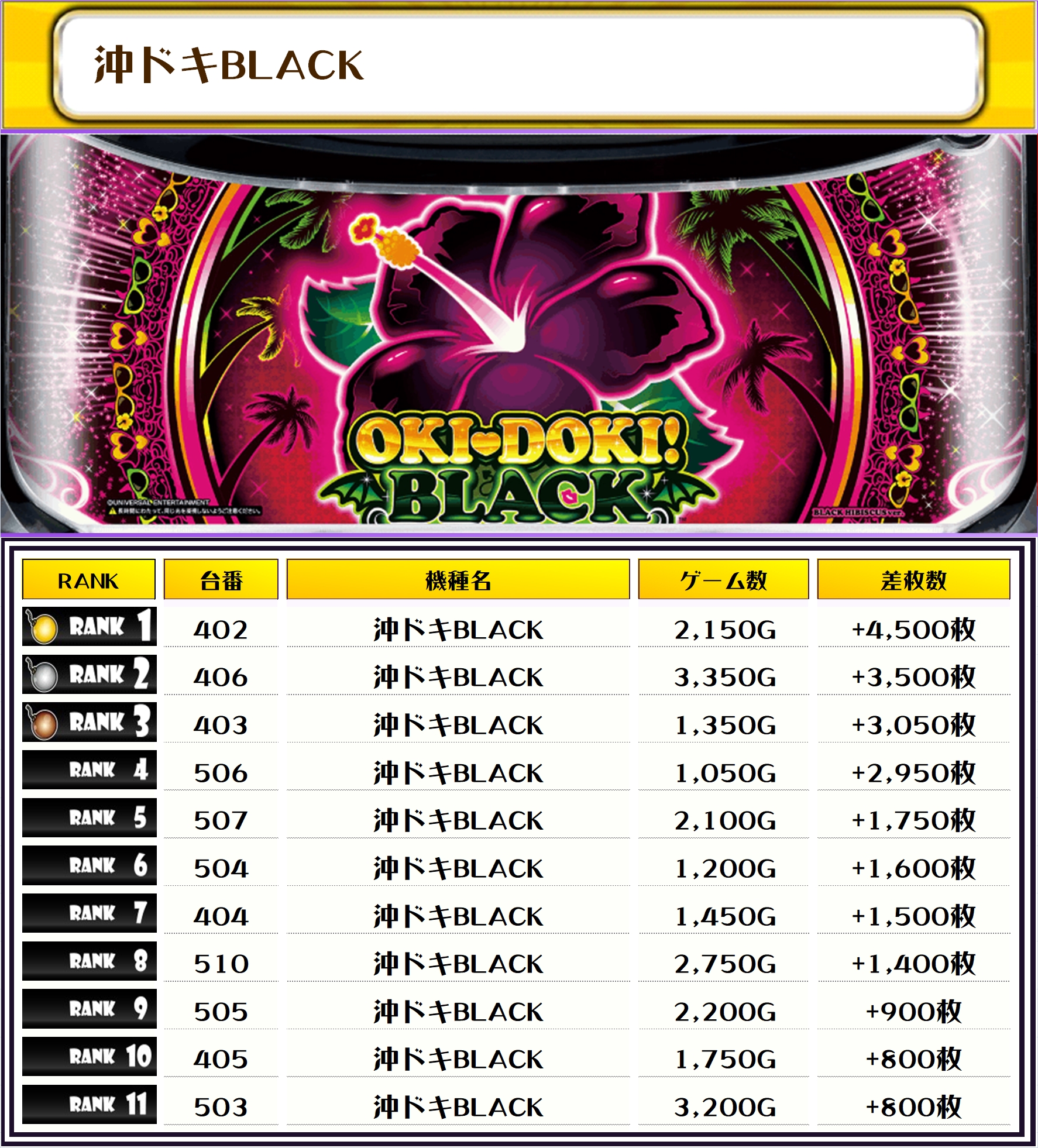 そして、この日全台を対象とした差枚ランキングがこちらになりますっ👍