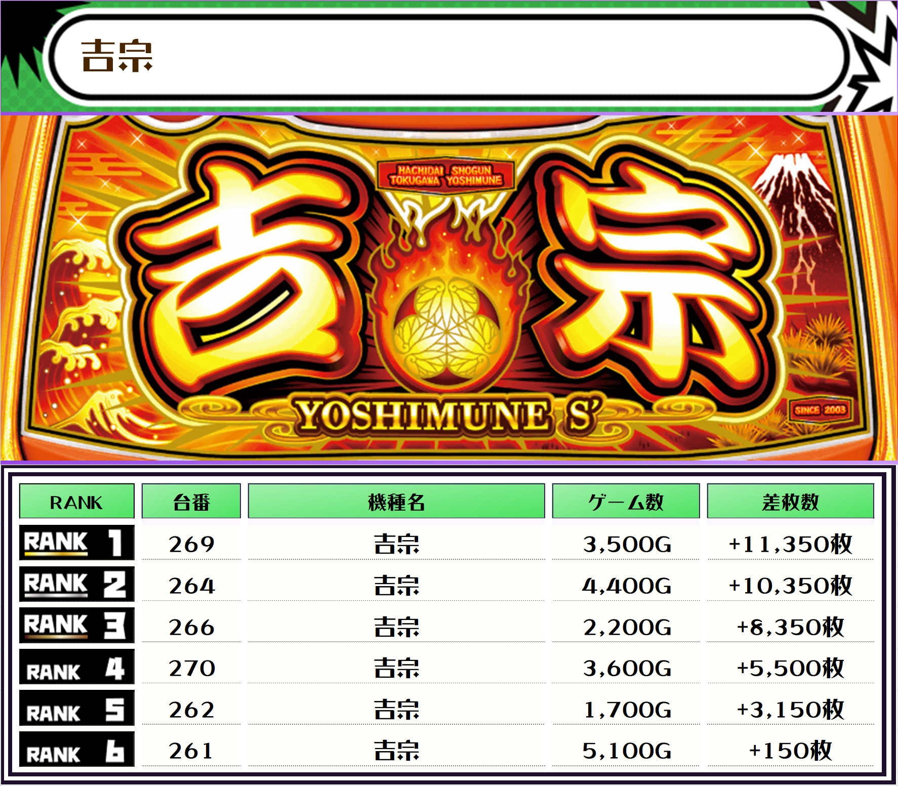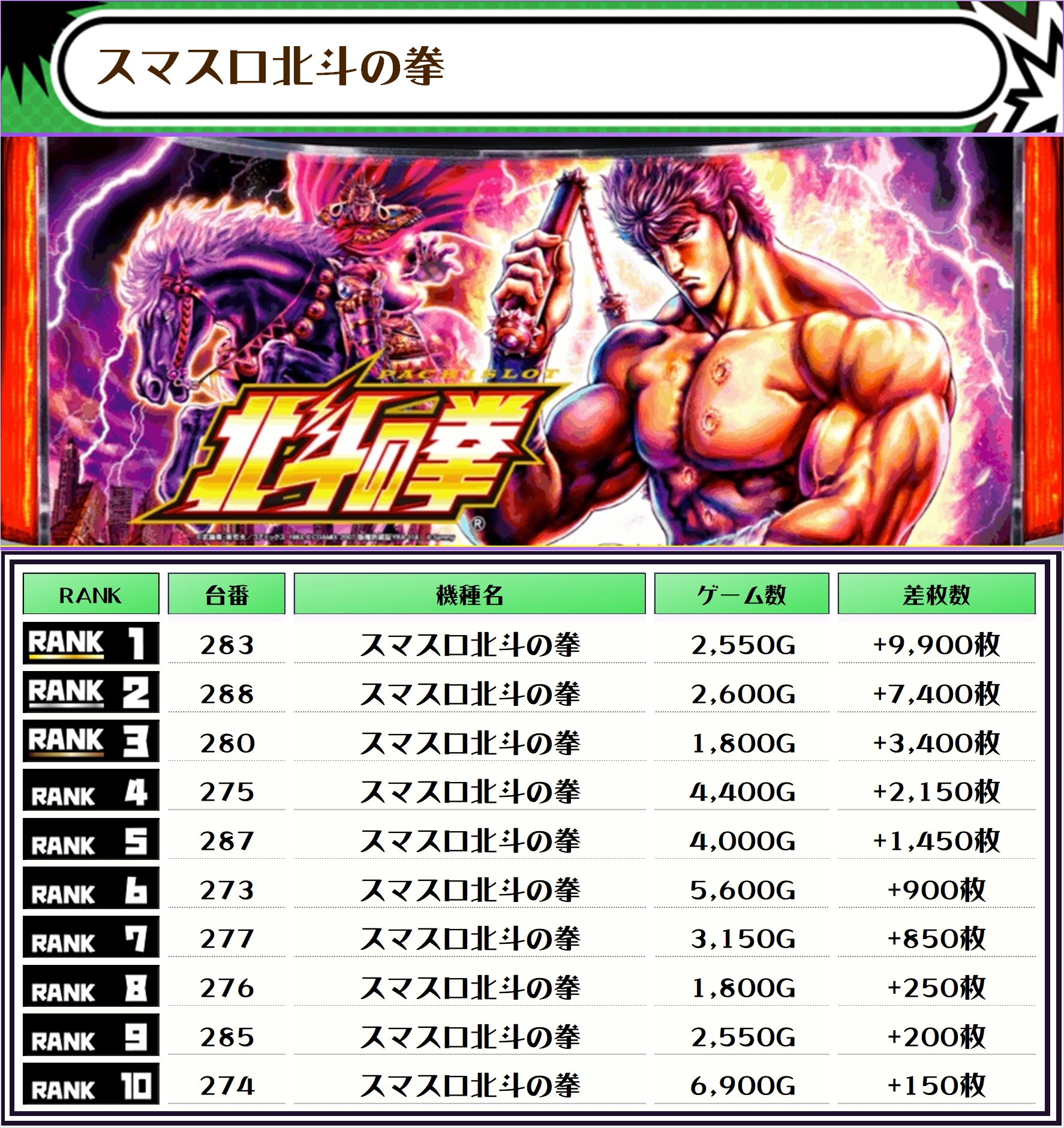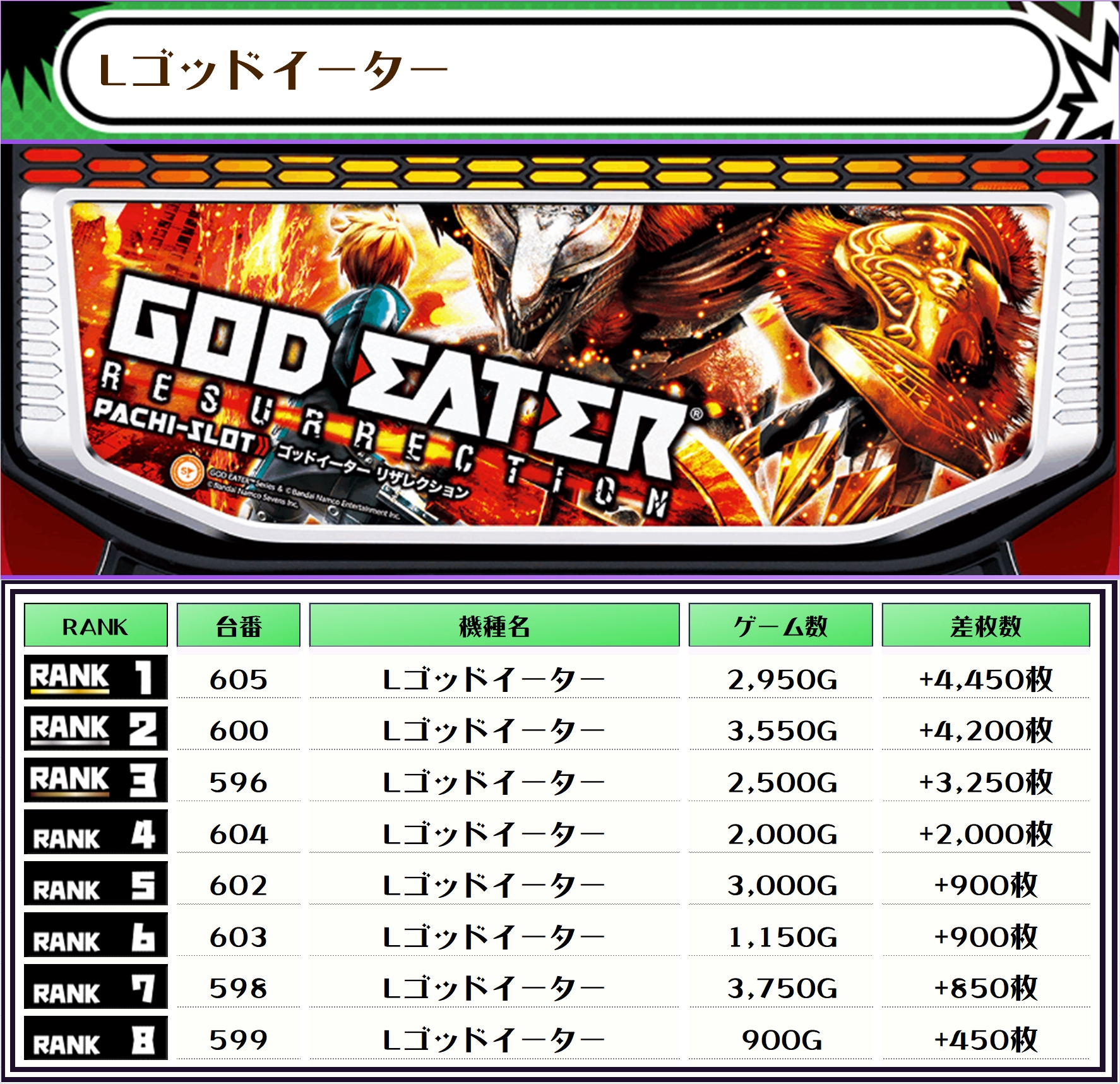そして、この日全台を対象とした差枚ランキングがこちらになりますっ👍
