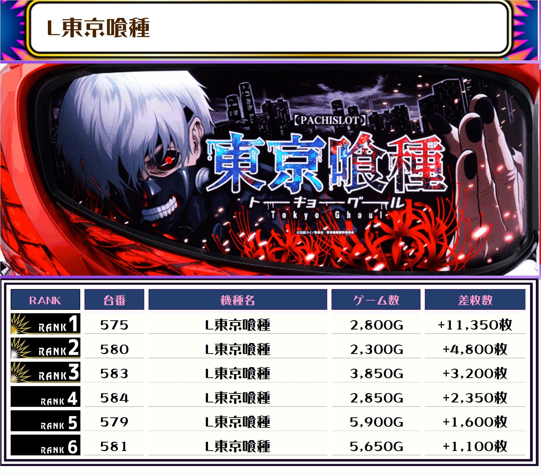 2位は【L東京喰種・575番台】の+11,350枚、3位には【チバリヨ2・427番台】の+8,800枚がランクインっ🏆🏆🏆🏆