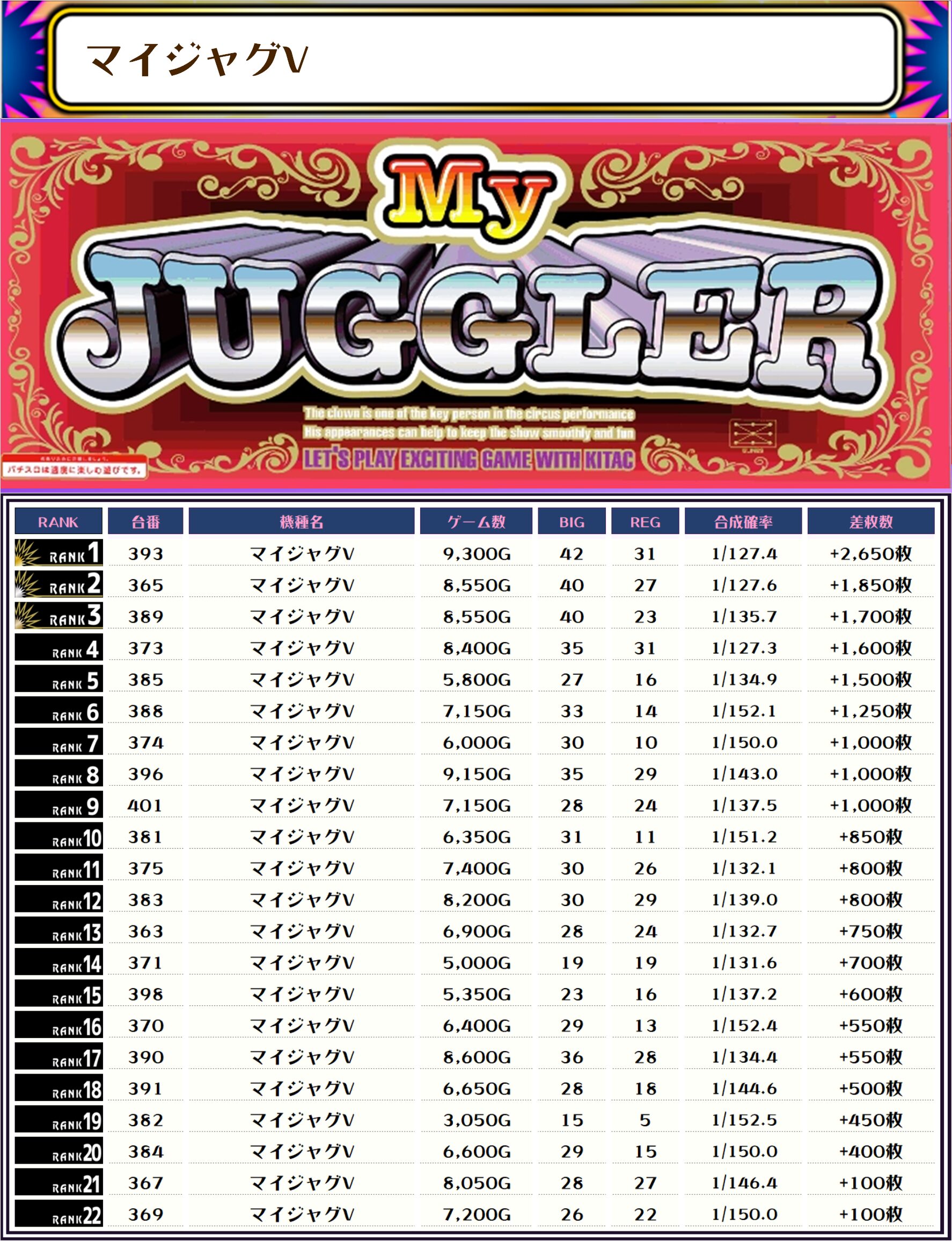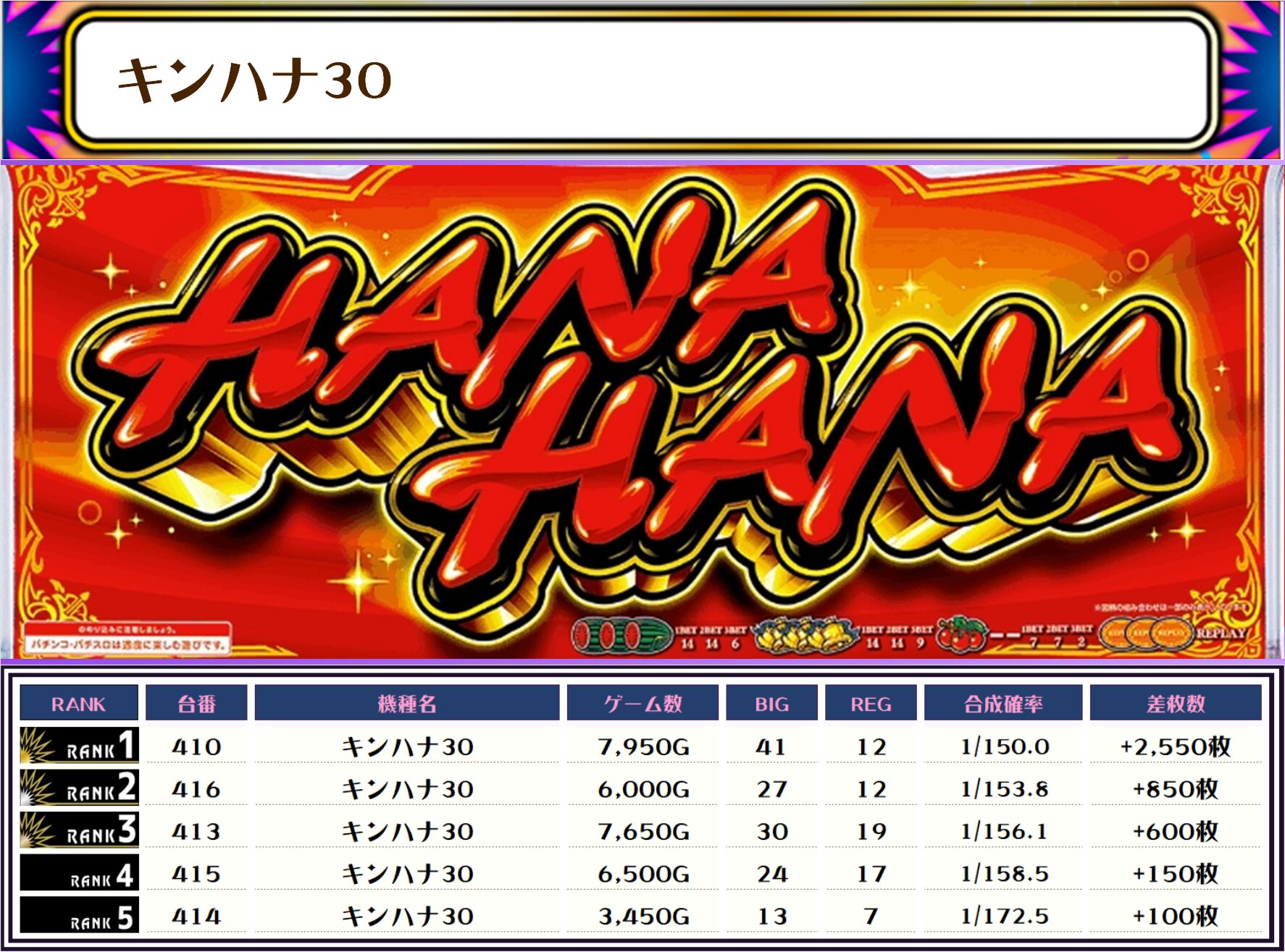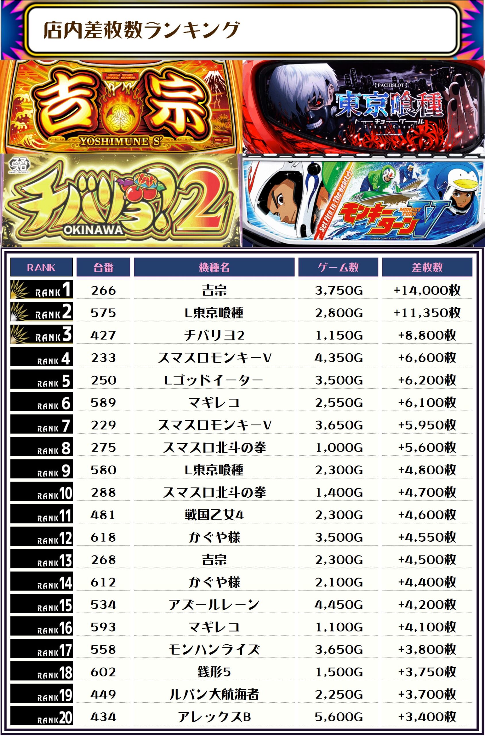そして、この日全台を対象とした差枚ランキングがこちらになりますっ👍