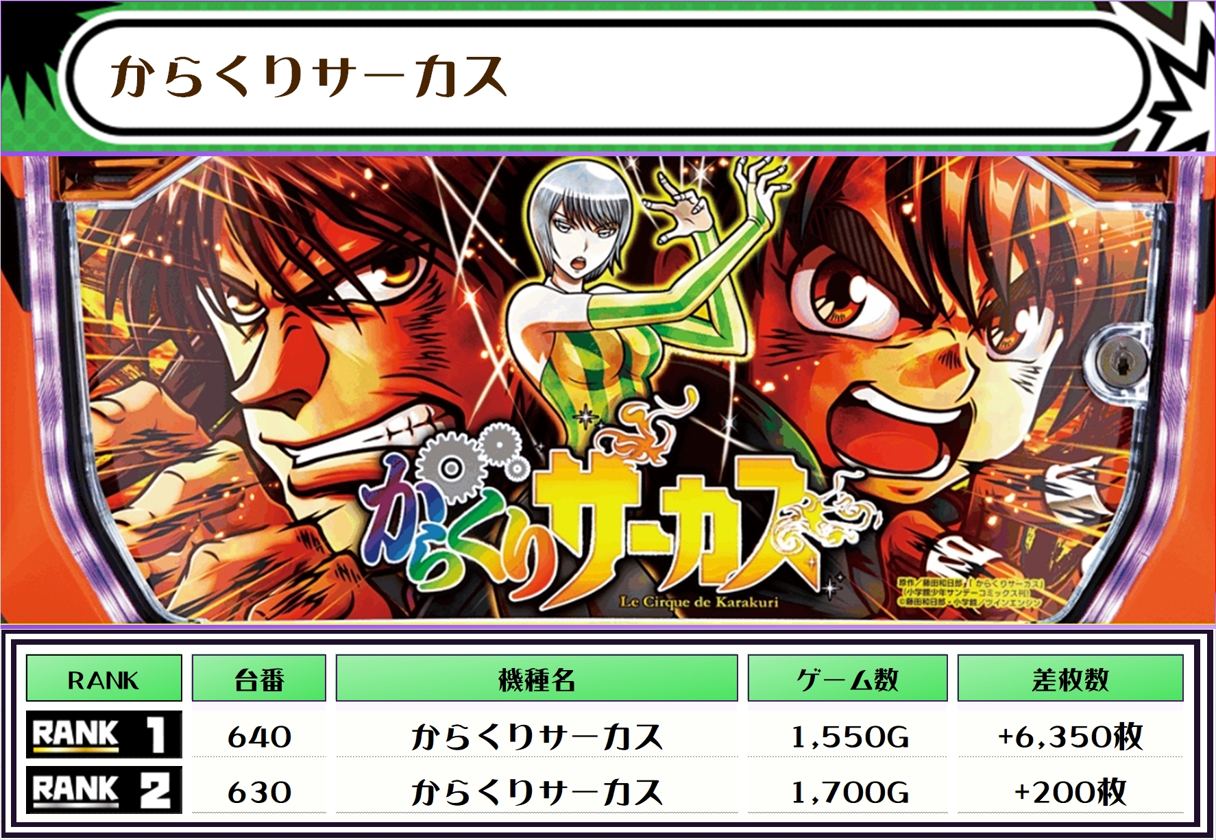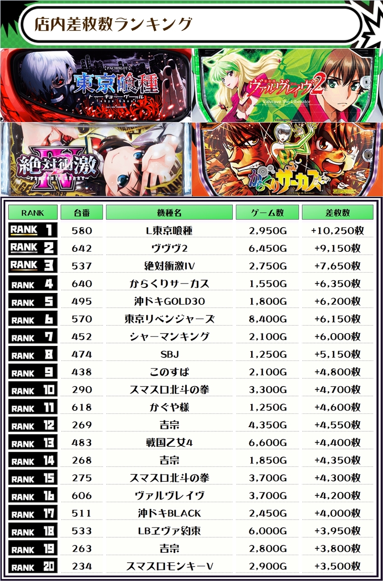 そして、この日全台を対象とした差枚ランキングがこちらになりますっ👍