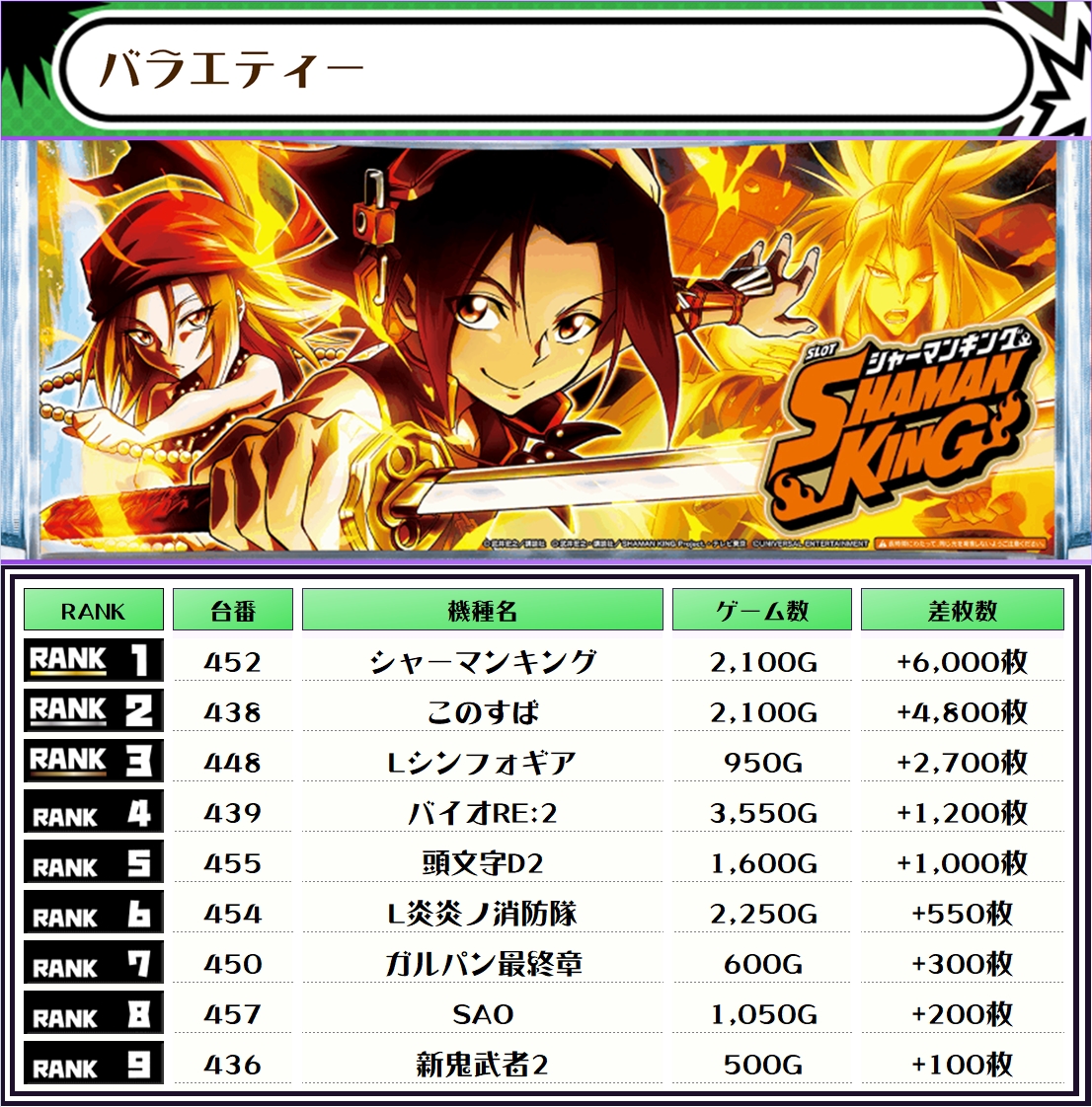 それでは、この日の【機種別差枚ランキング】を見ていきましょう❗️