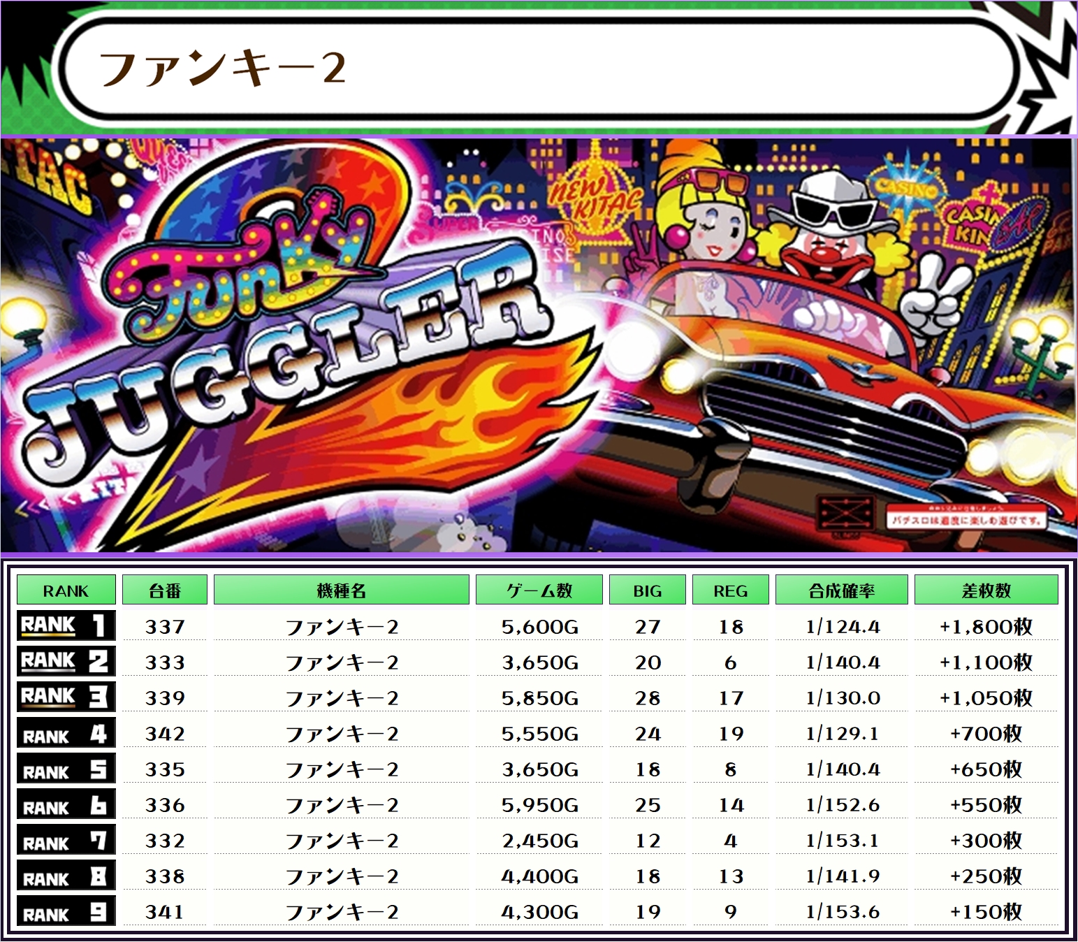 そして、この日全台を対象とした差枚ランキングがこちらになりますっ👍