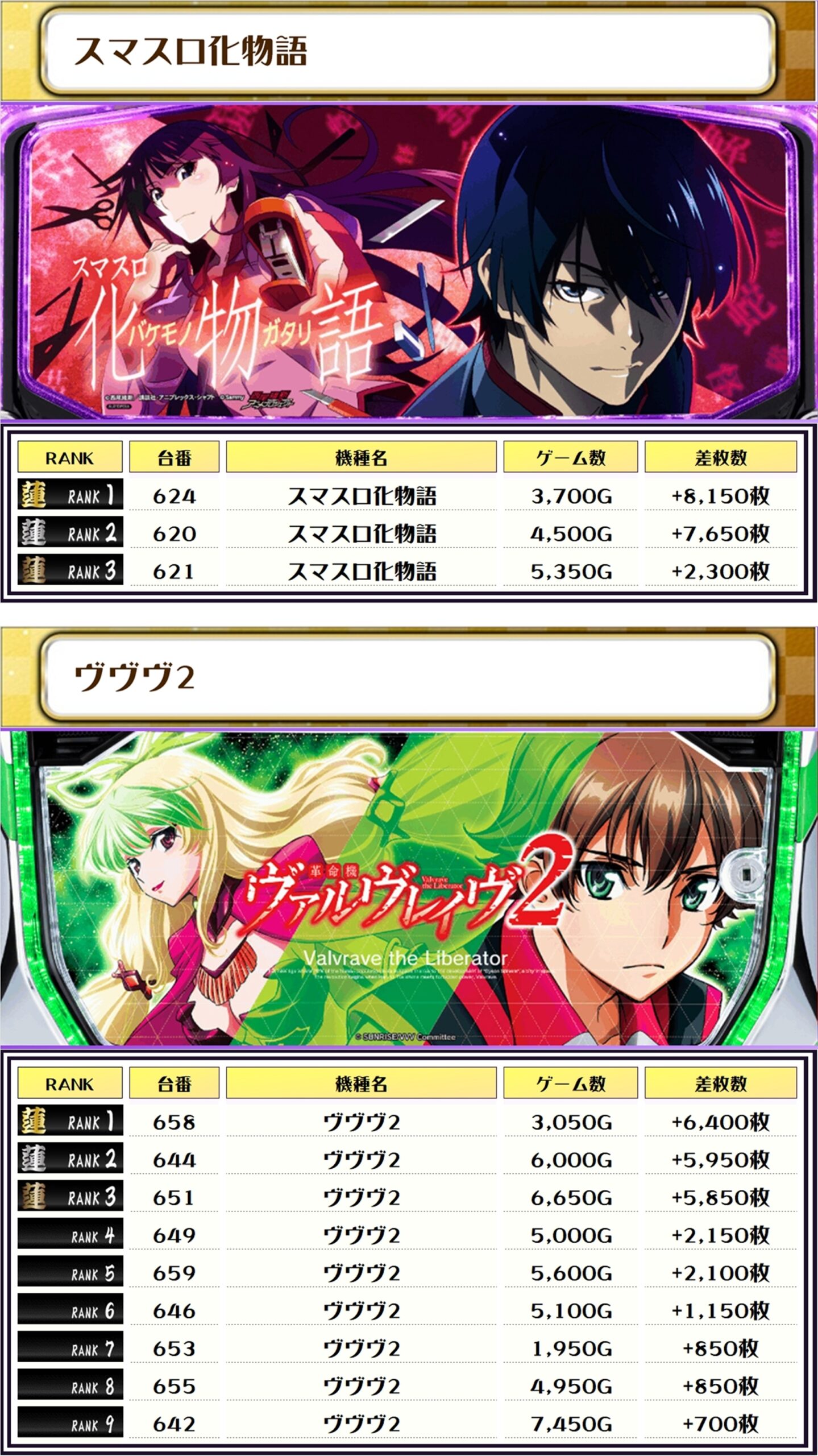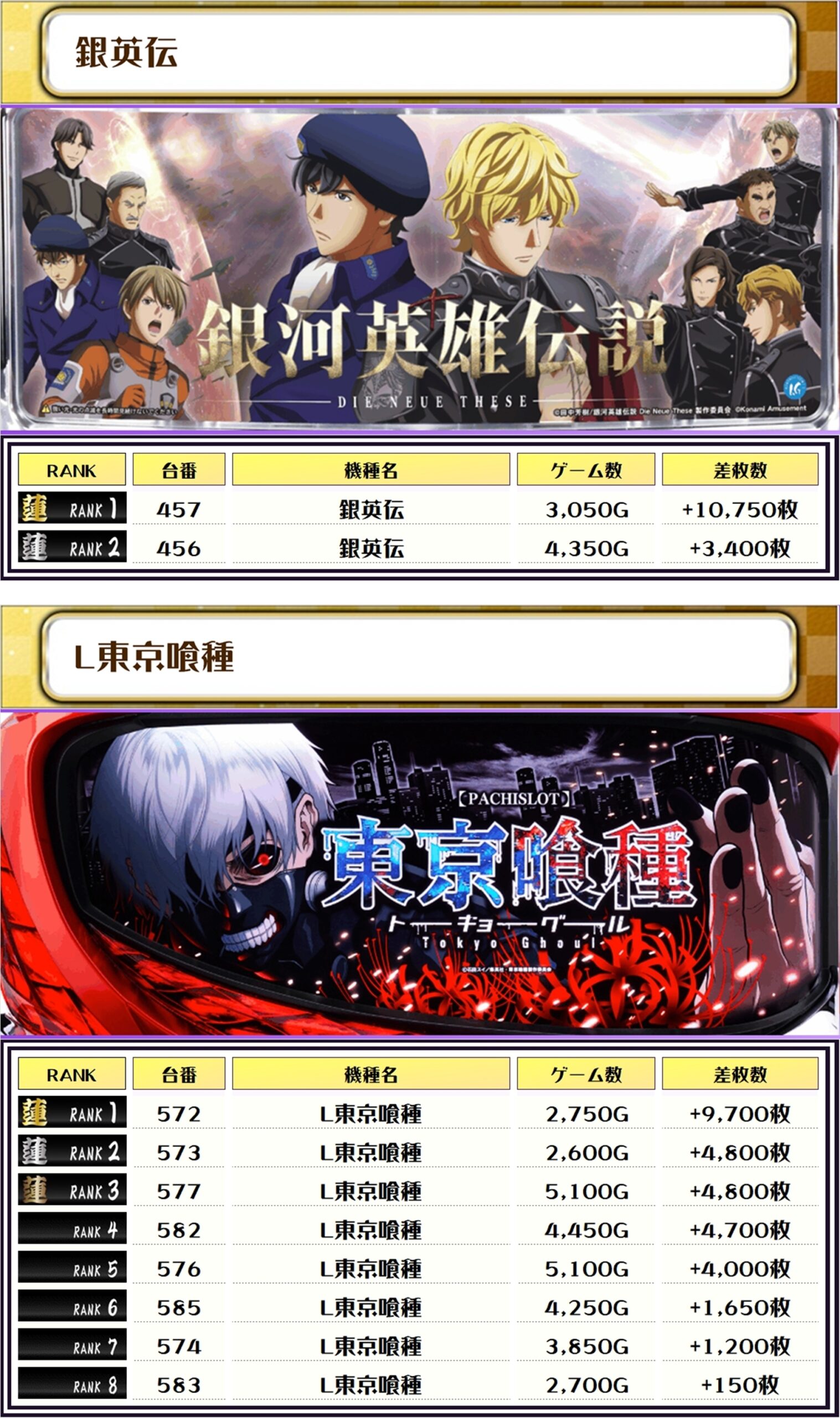 2位は【銀英伝・457番台】の+10,750枚、3位には【スマスロモンキーV・228番台】の+10,100枚がランクインっ🏆🏆🏆🏆