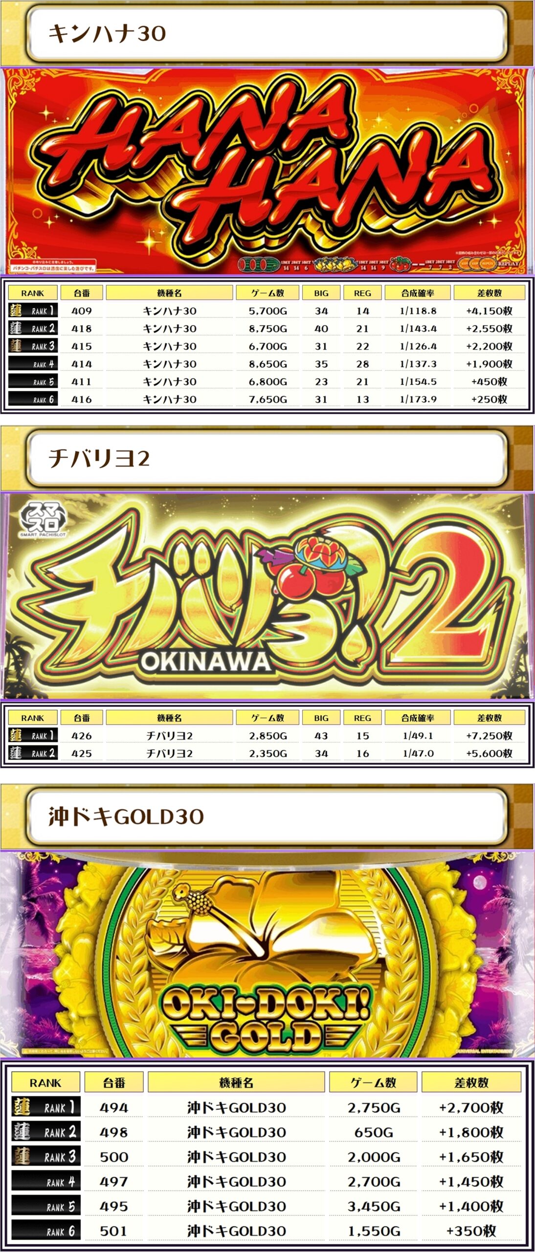 それでは、この日の【機種別差枚ランキング】を見ていきましょう❗️