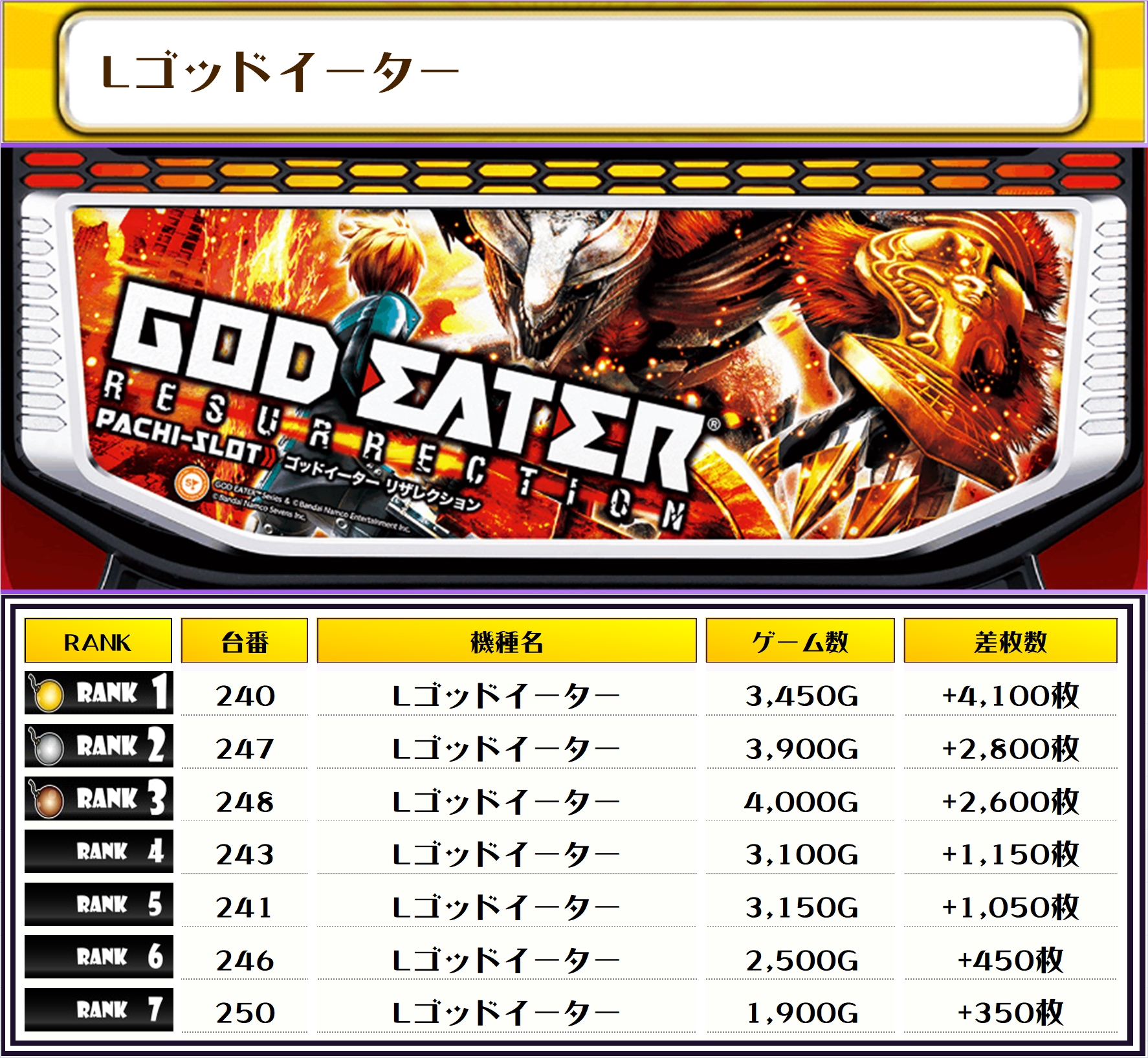 そして、この日全台を対象とした差枚ランキングがこちらになりますっ👍