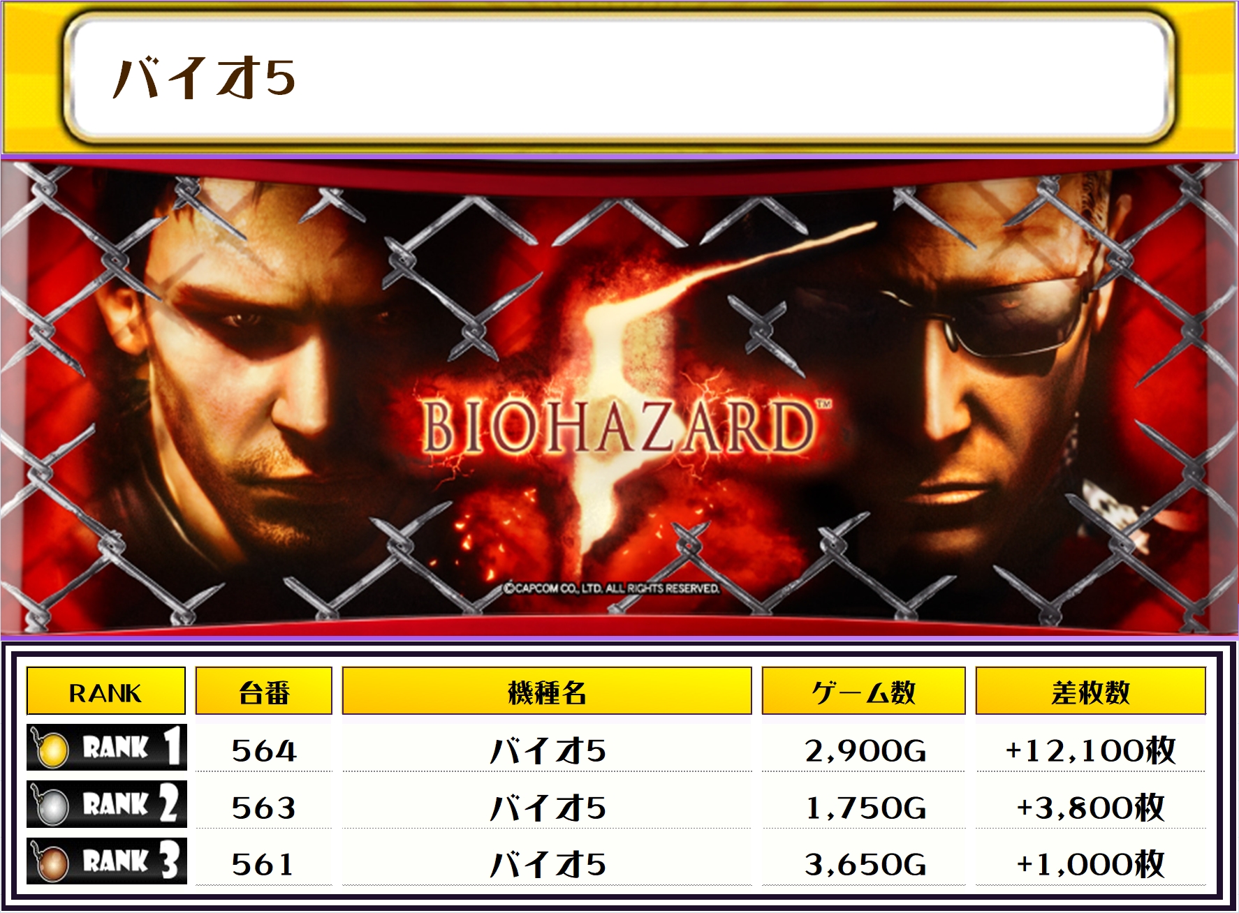 この日、全体の差枚トップに輝いたのは【バイオ5・564番台】の12,100枚‼️