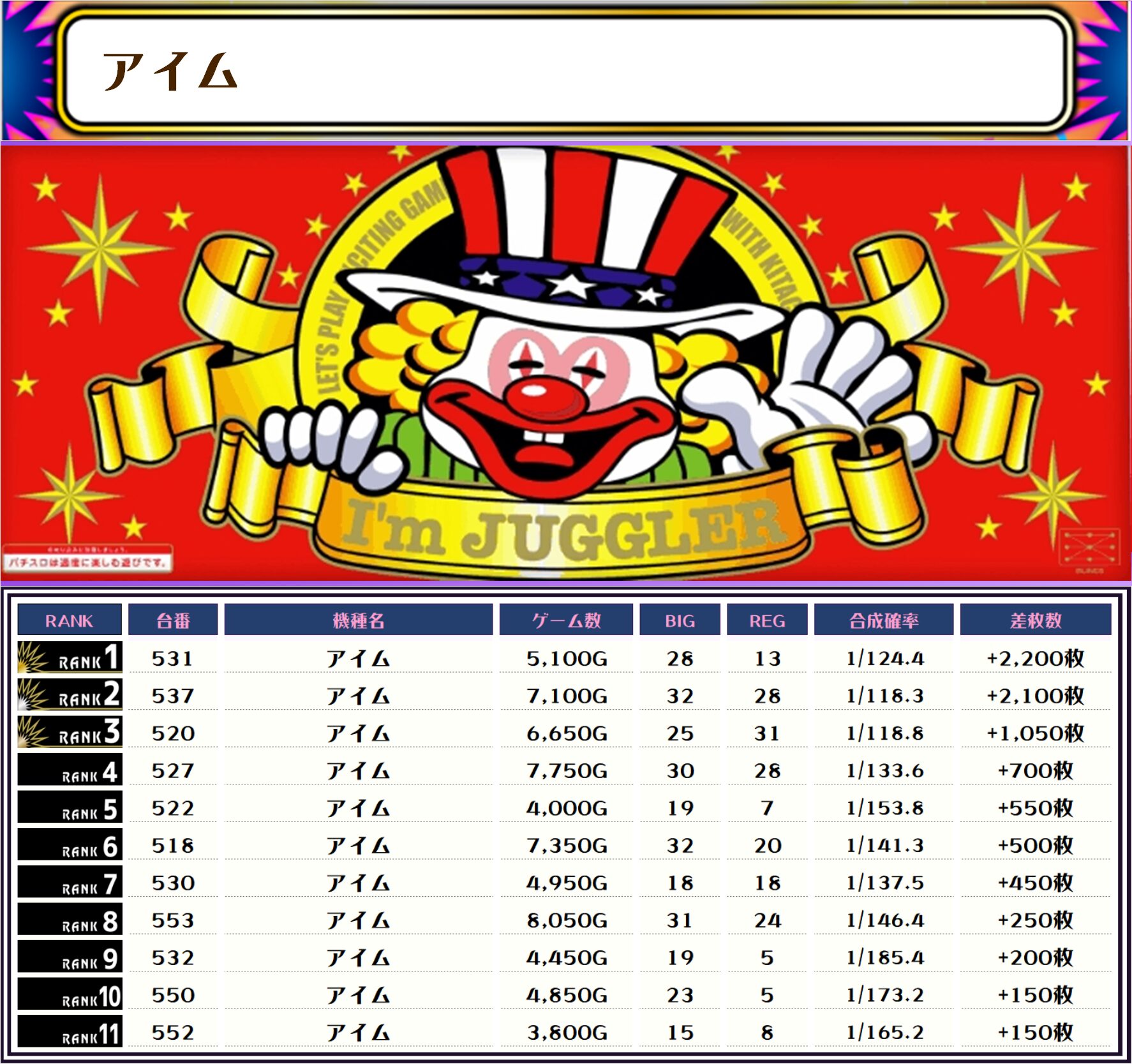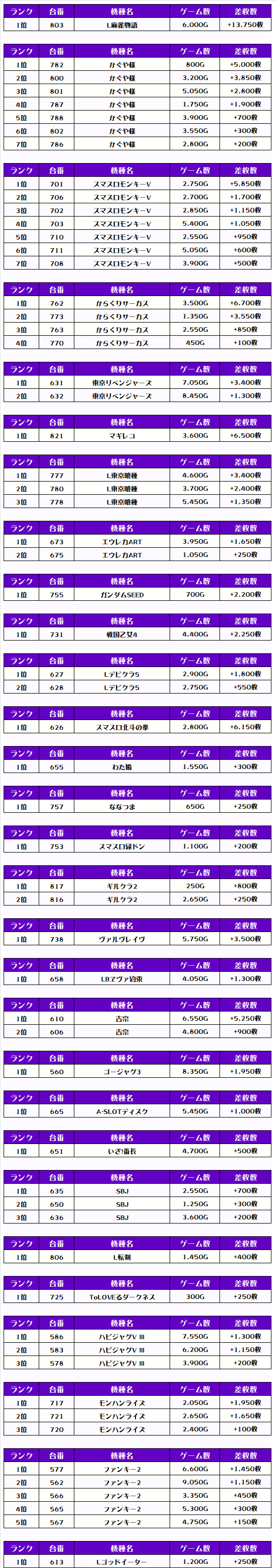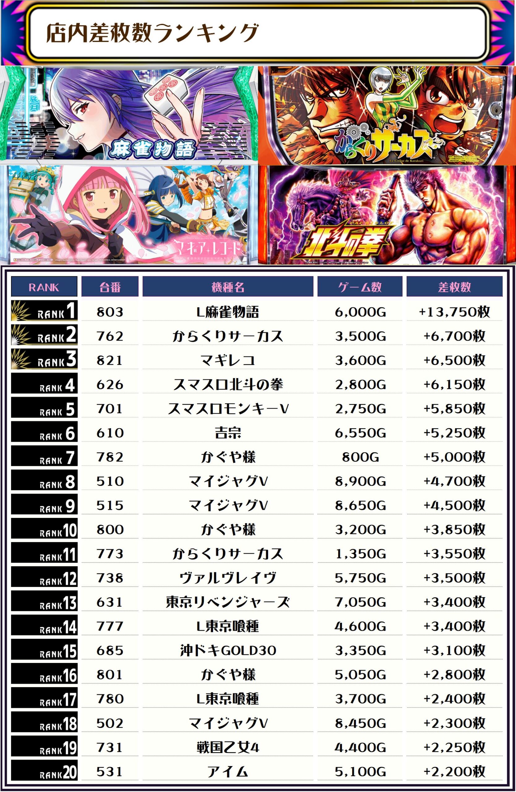そして、この日全台を対象とした差枚ランキングがこちらになりますっ👍