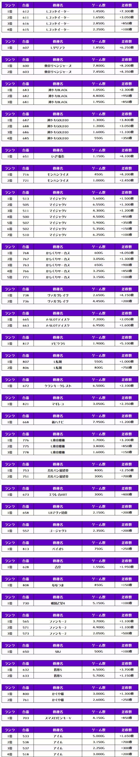 それでは、この日の【機種別差枚ランキング】を見ていこう❗️