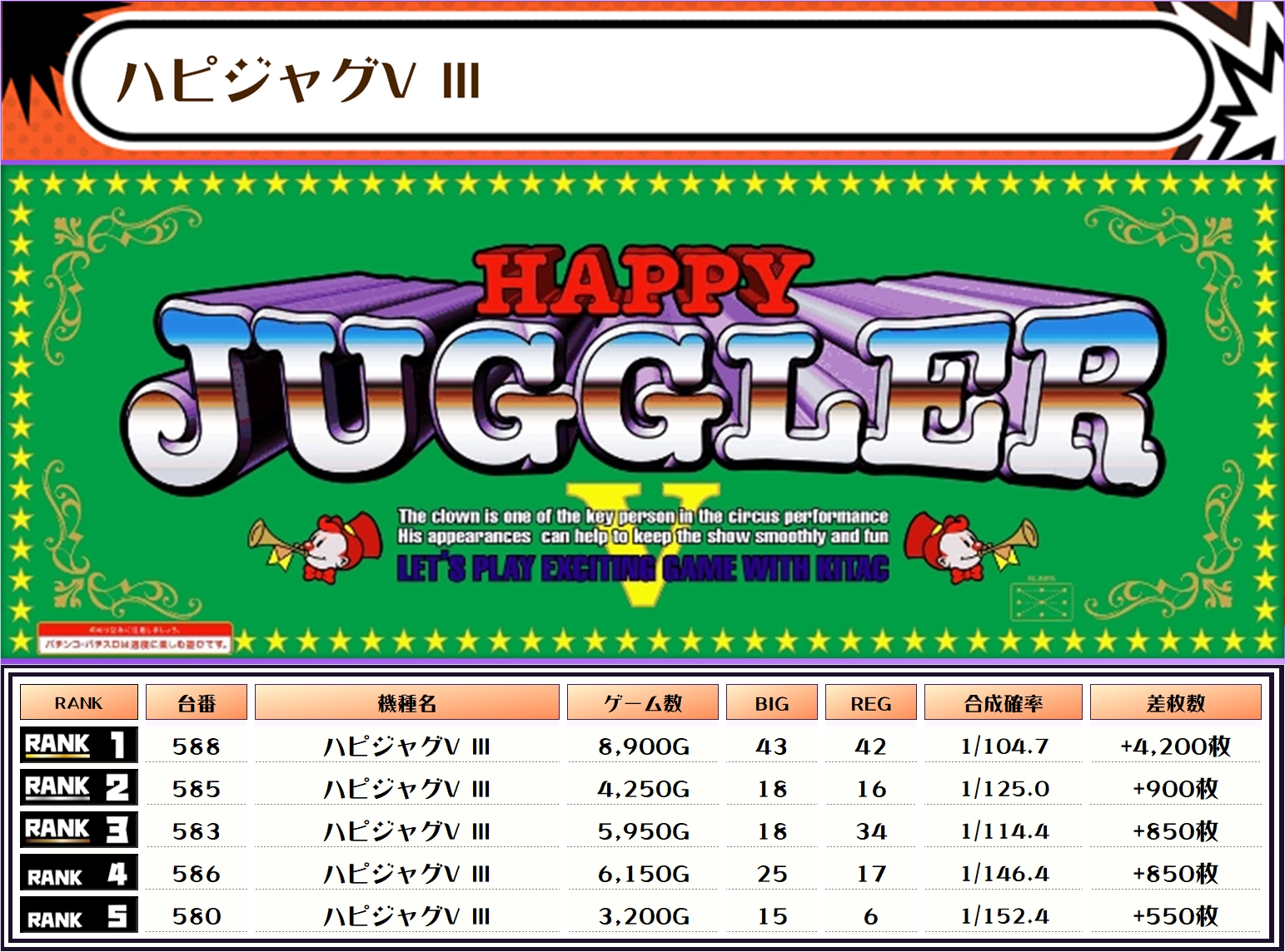 ピックアップはしていないが、マイジャグVは15台中7台、沖ドキBLACKは3台中3台、沖ドキGOLDは5台中4台と高い勝率だったぞ🔥🔥🔥
