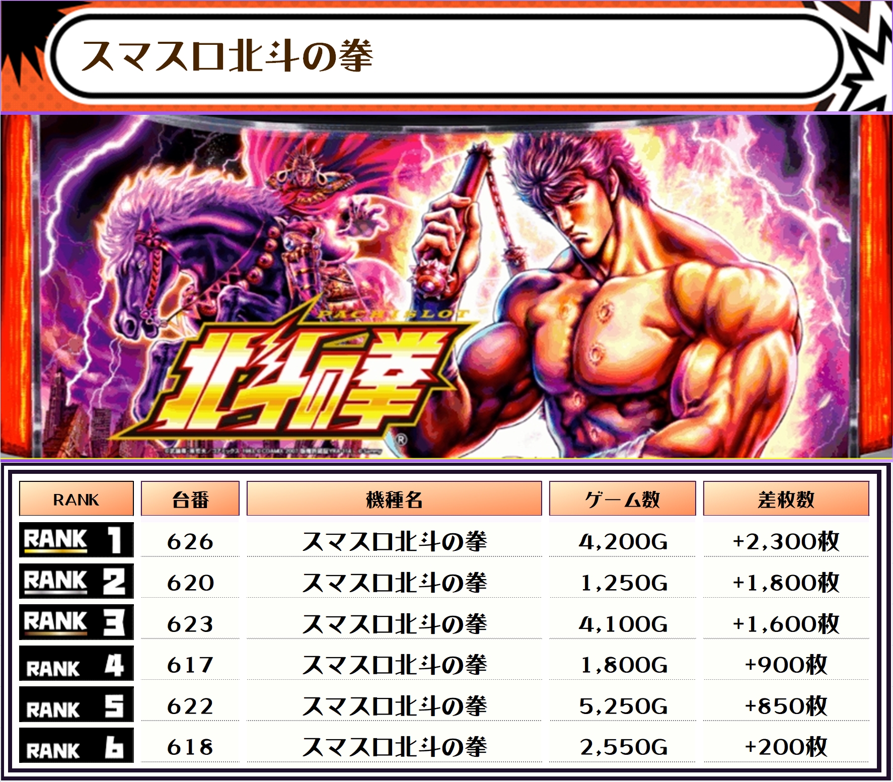 そして、この日全台を対象とした差枚ランキングがこちらになりますっ👍