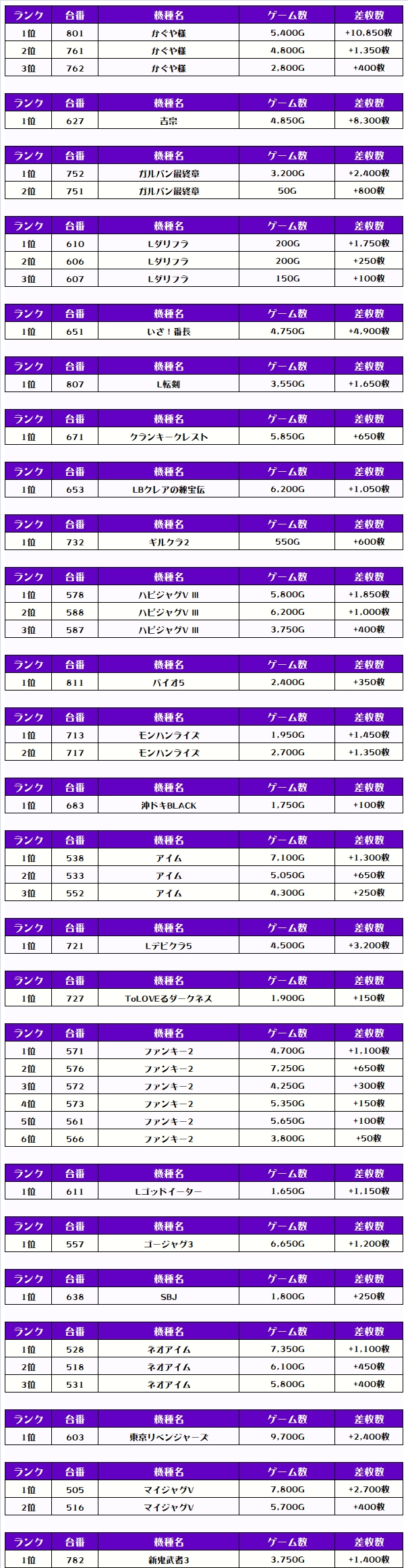 それでは、この日の【機種別差枚ランキング】を見ていきましょう❗️