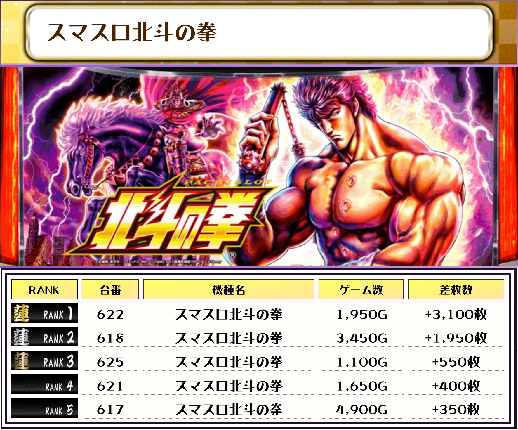 そして、この日全台を対象とした差枚ランキングがこちらになりますっ👍
