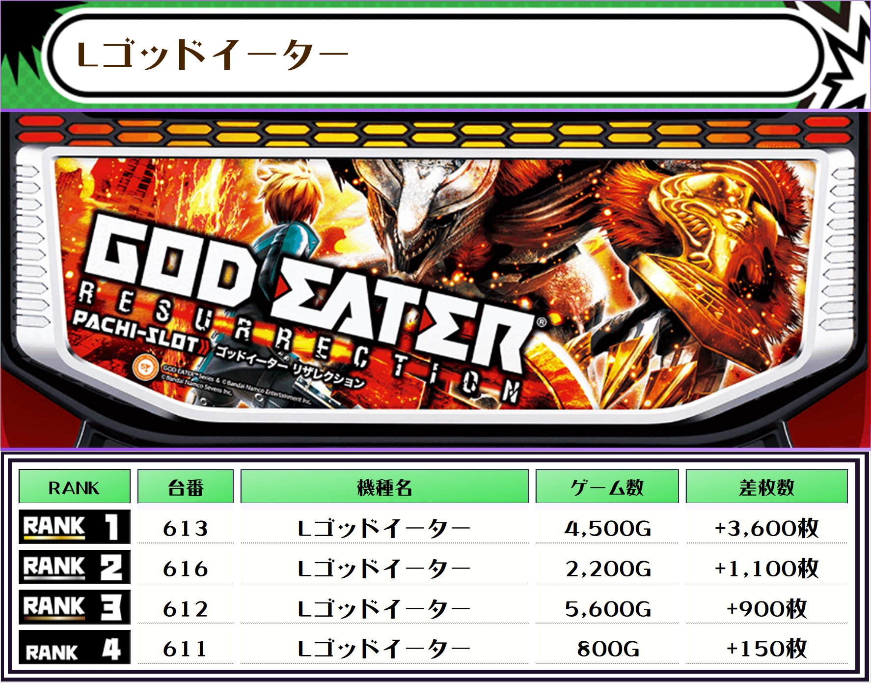 それでは、この日の【機種別差枚ランキング】を見ていこう❗️