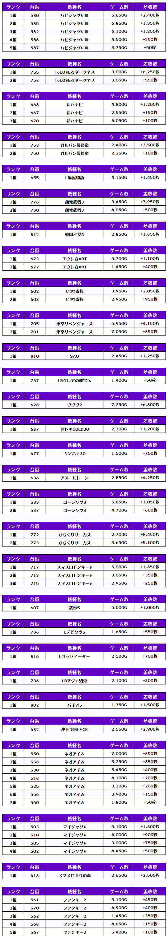 それでは、この日の【機種別差枚ランキング】を見ていきましょう❗️
