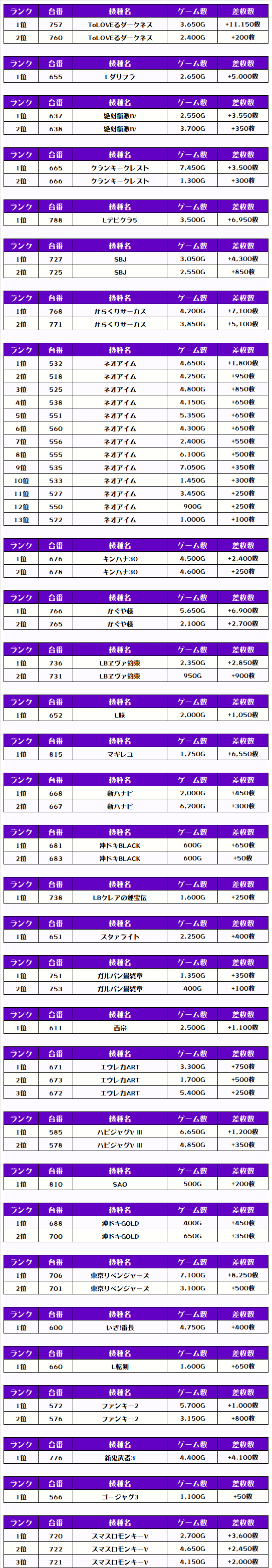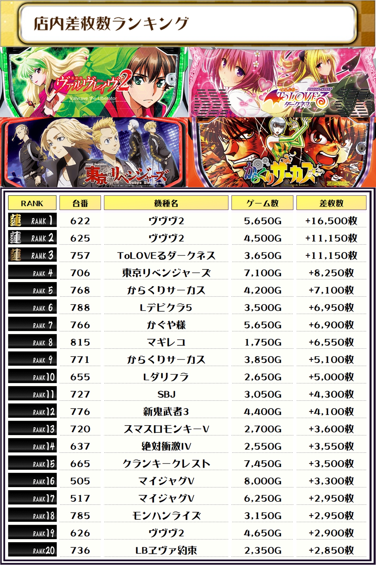 そして、この日全台を対象とした差枚ランキングがこちらになりますっ👍