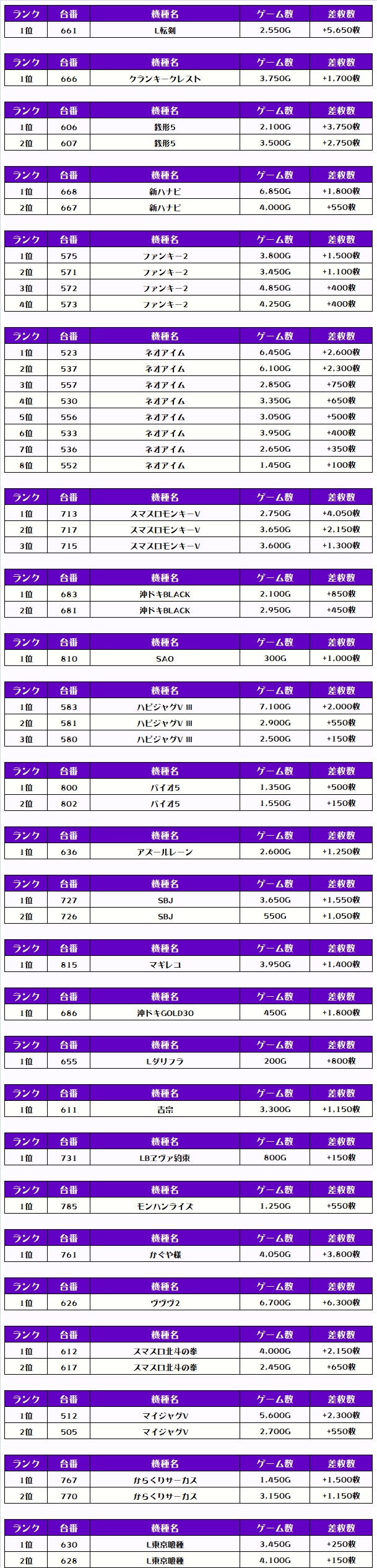 ということで、この日の店舗全体差枚数ランキングがこちら❗️
