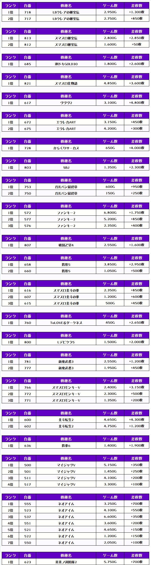 それでは、この日の【機種別差枚ランキング】を見ていこう❗️
