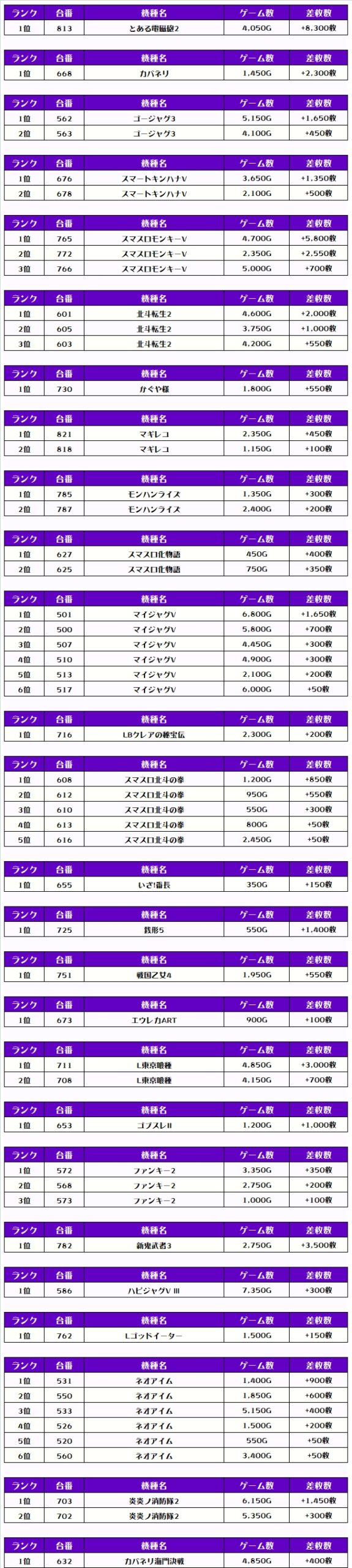 それでは、この日の【機種別差枚ランキング】を見ていこう❗️