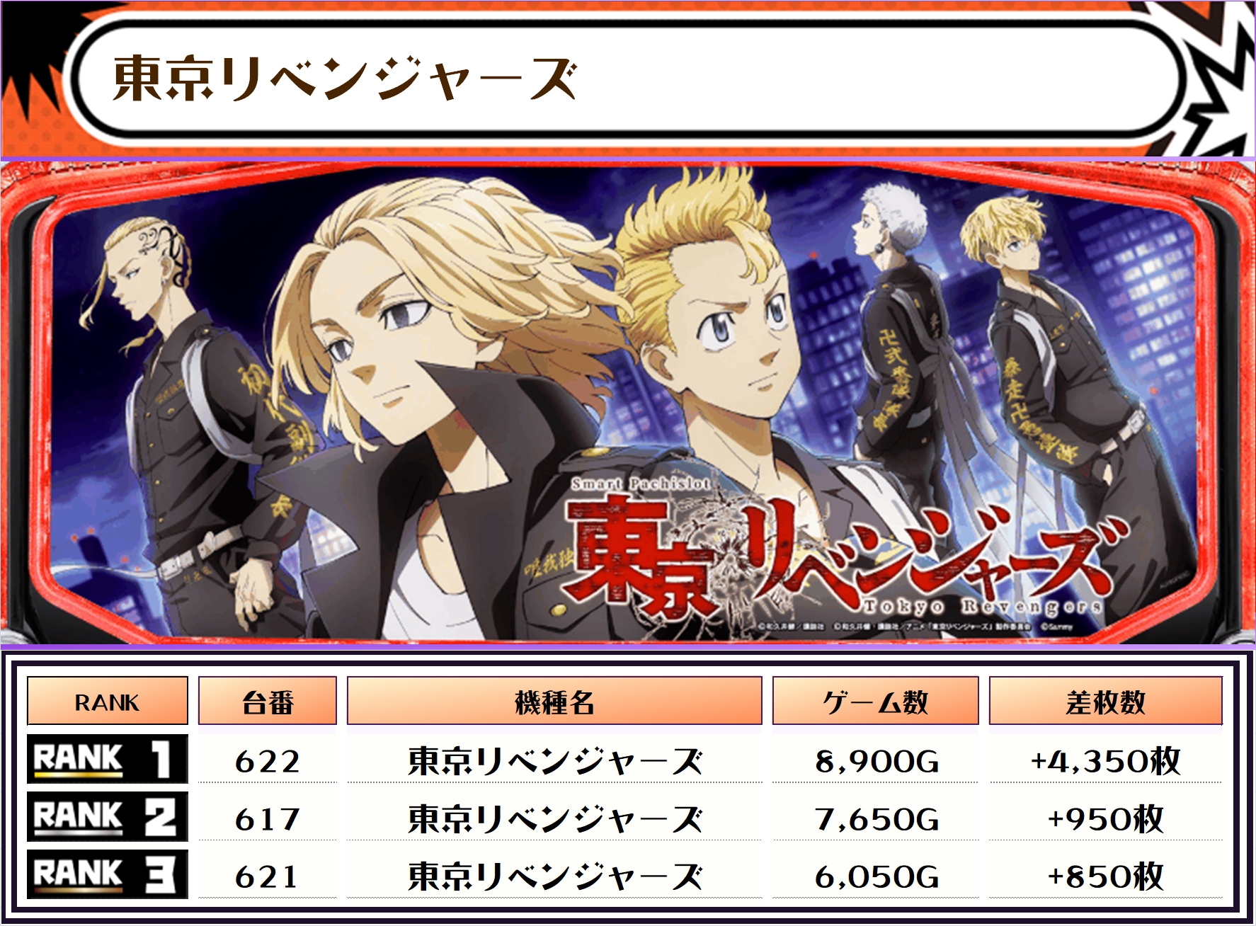 そして、この日全台を対象とした差枚ランキングがこちらになりますっ👍