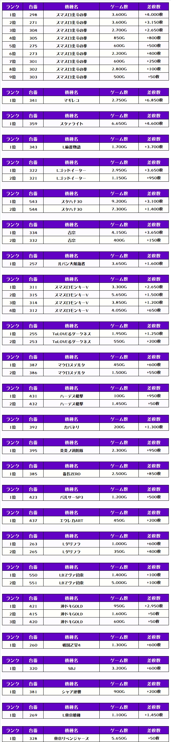 それでは、機種別差枚ランキングをチェックしますか❗️