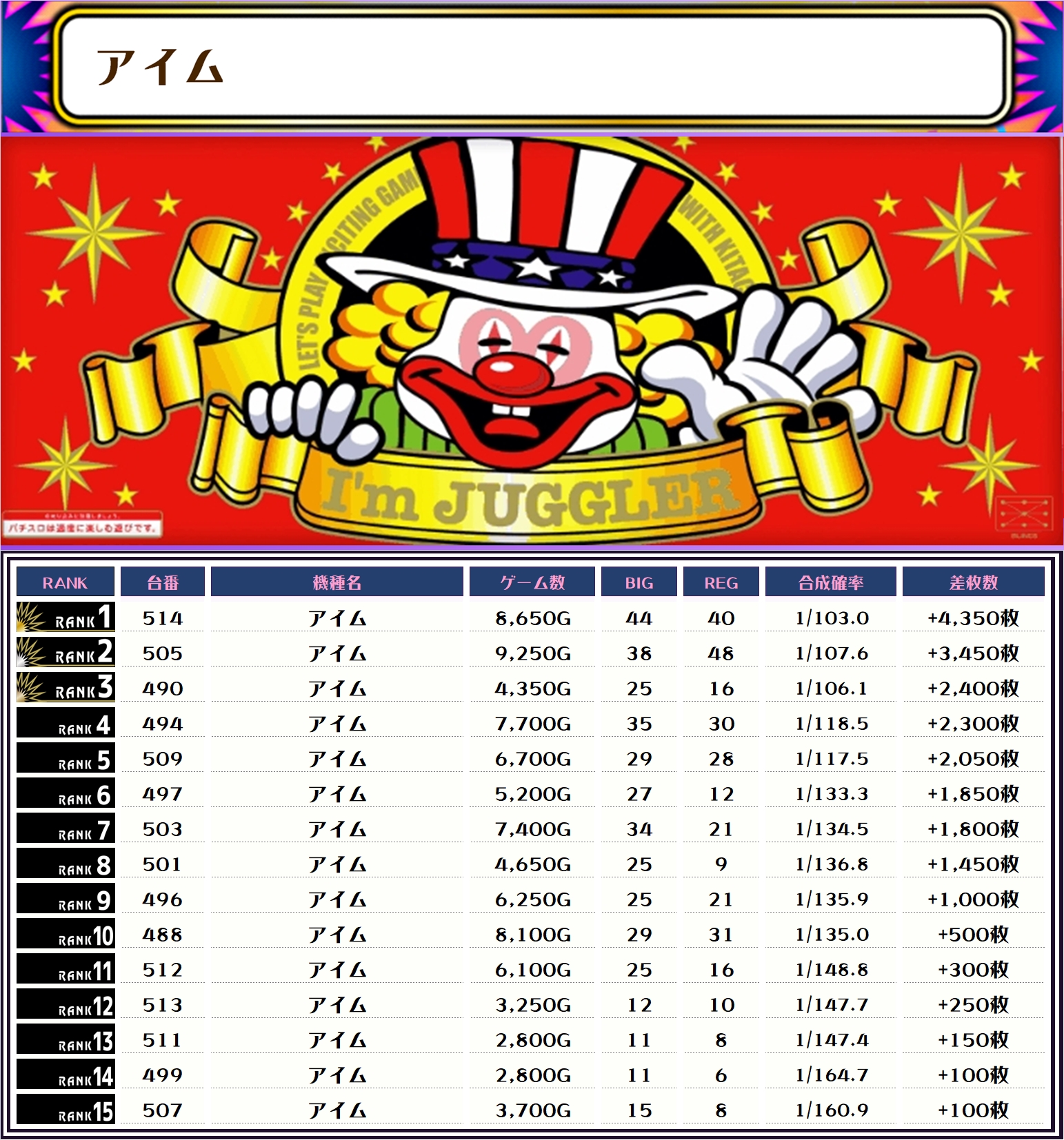 どのジャグラーもブン回りした台が多く、期待していたお客さんが多かったと推測できます💡