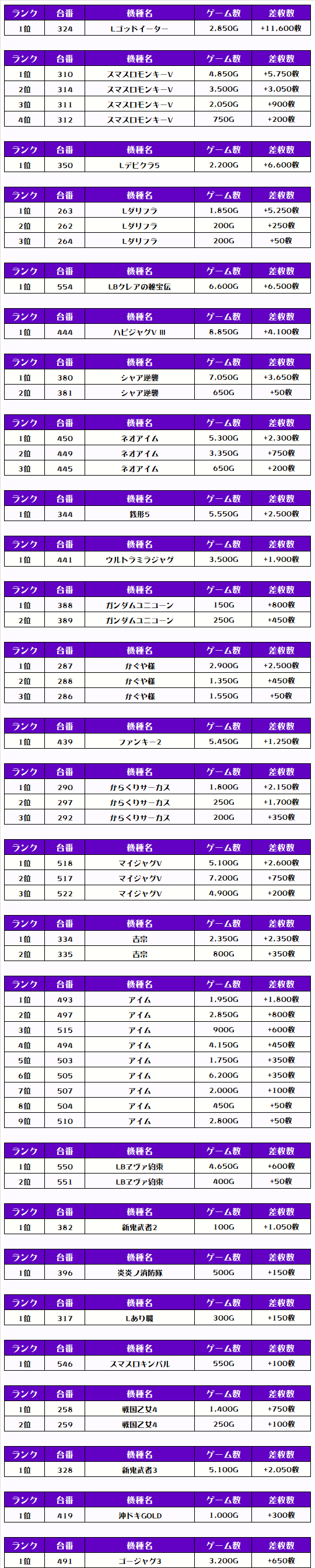 それでは、機種別差枚ランキングをチェックしますか❗️