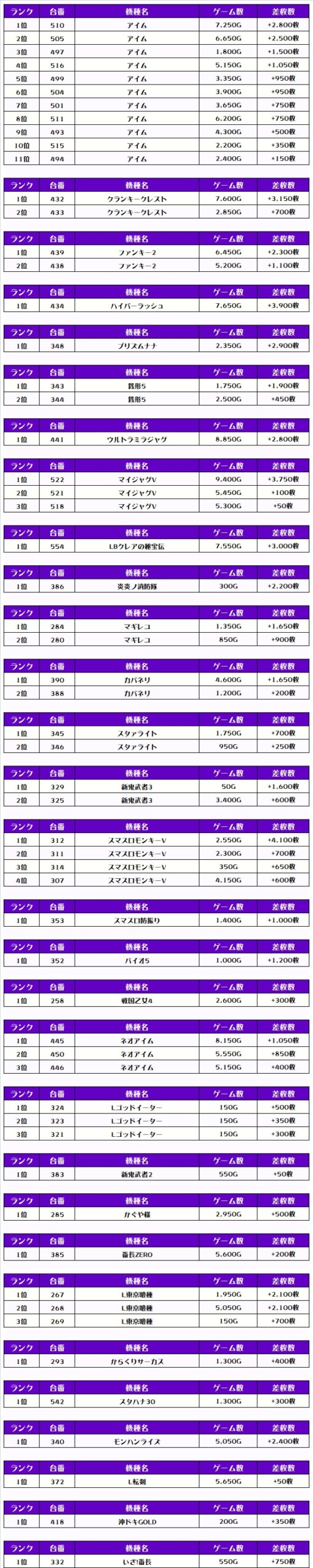 それでは早速【機種別差枚ランキング】をチェックしていきましょう🙆‍♀️