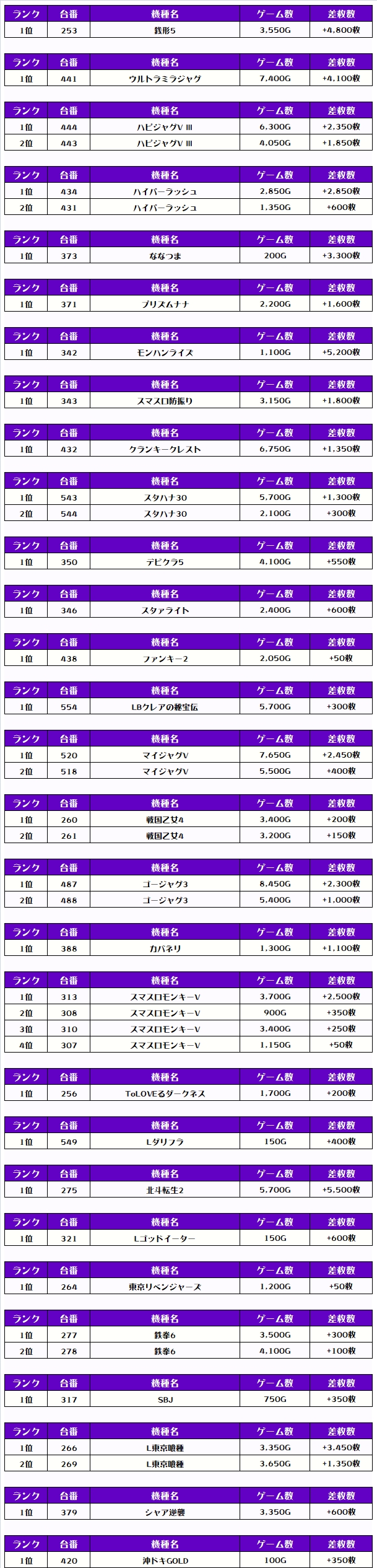それでは、機種別差枚ランキングをチェックしますか❗️