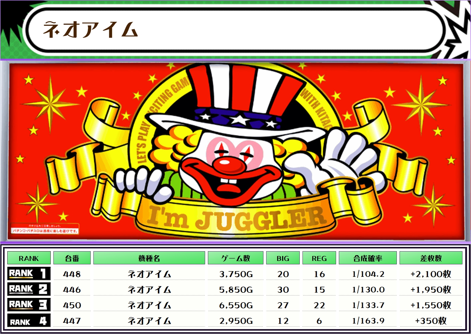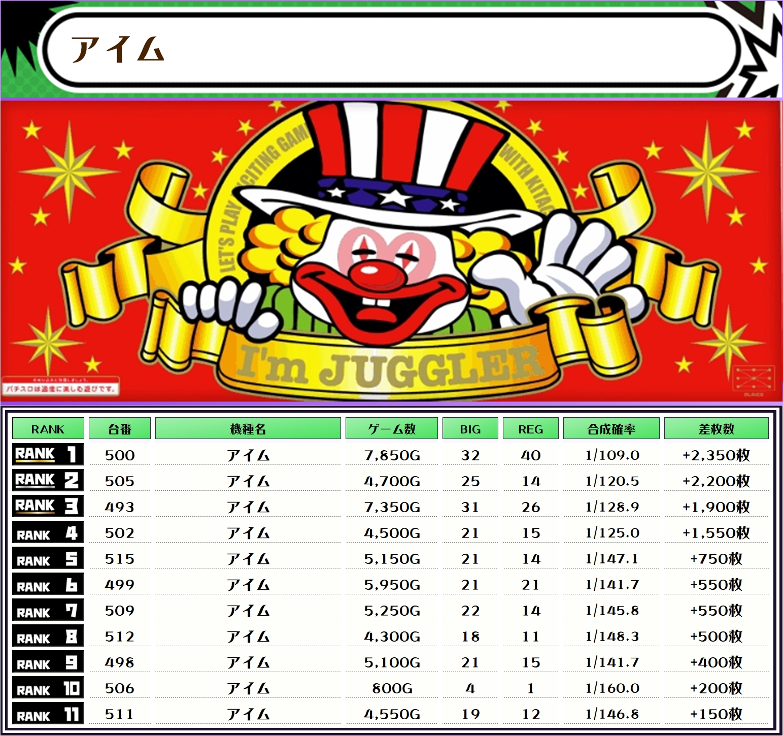 最後に、この日の店内差枚ランキングをご覧ください❗️