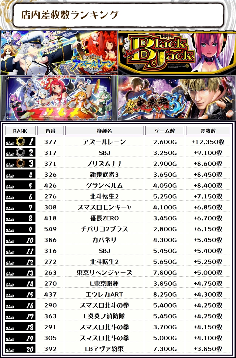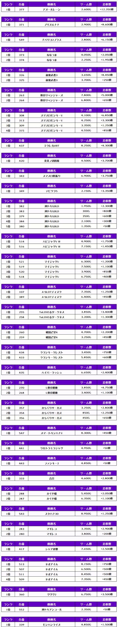 それでは早速【機種別差枚ランキング】をチェックしていきましょう🙆‍♀️
