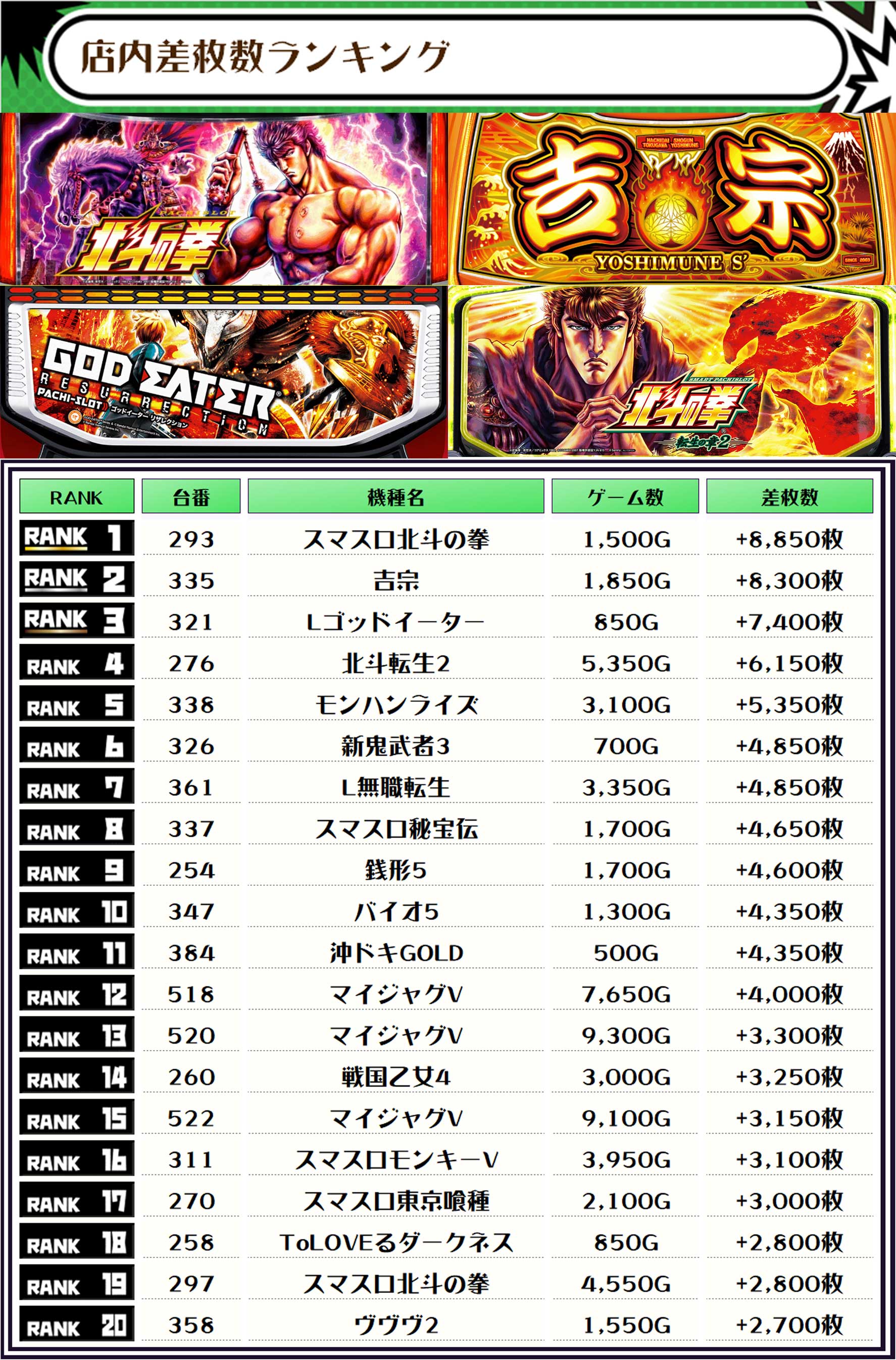 最後に、この日の店内差枚ランキングをご覧ください❗️