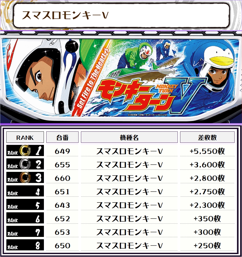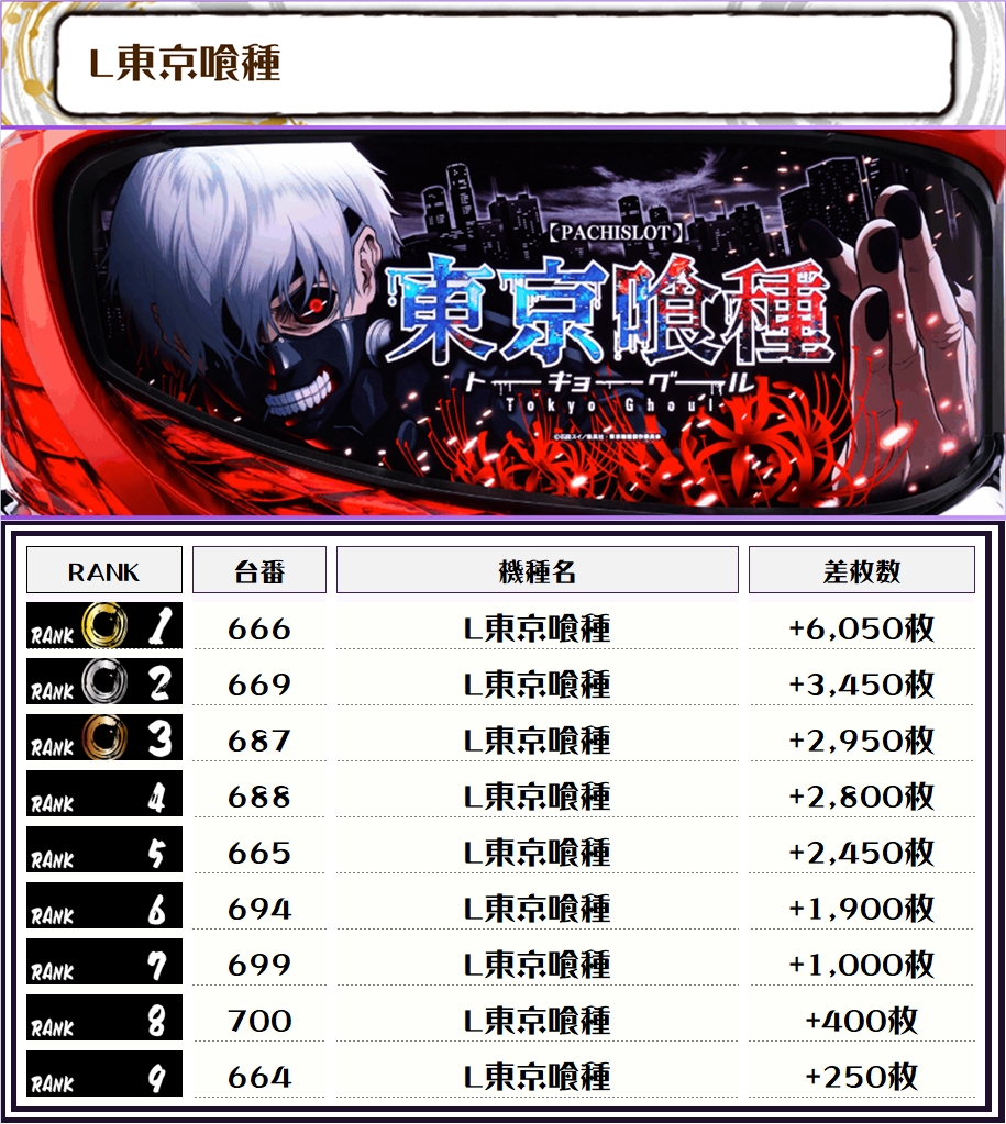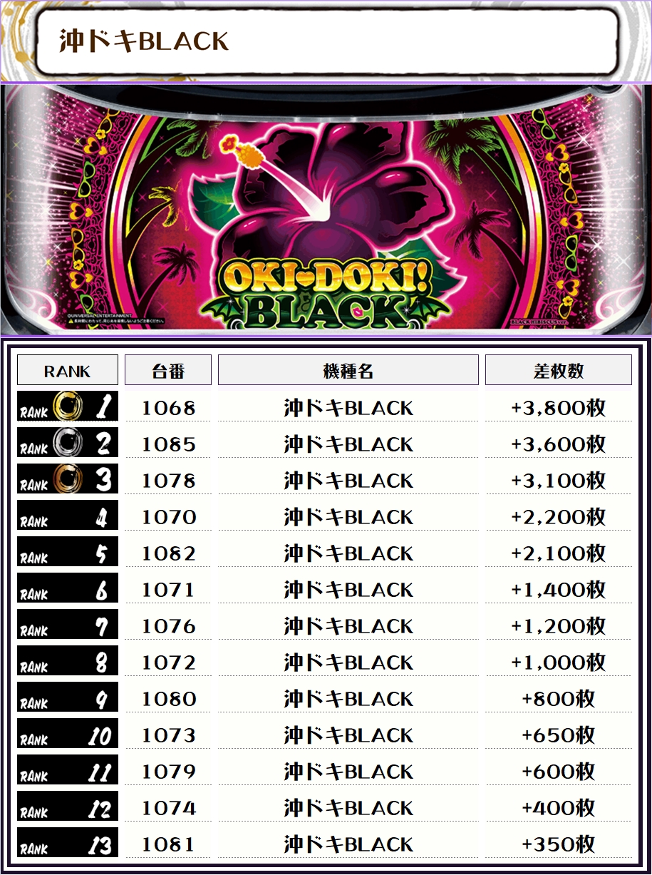 また、この日の店内差枚ランキングがこちら❗️