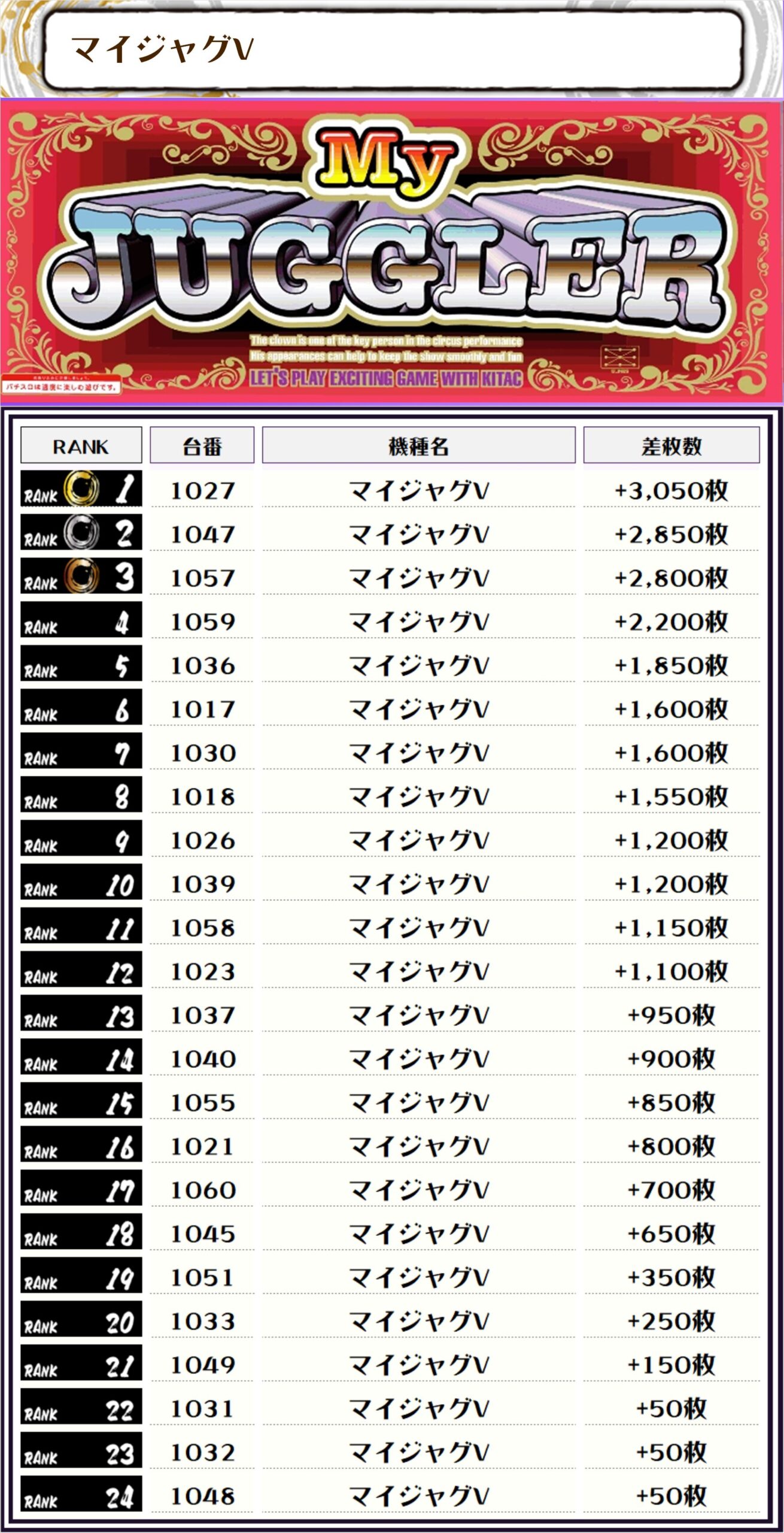 それでは早速【機種別差枚ランキング】をチェックしていきましょう🙆‍♀️