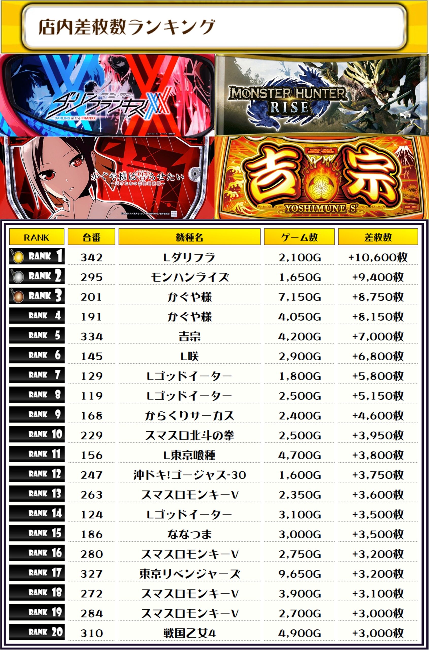 それでは、この日の【機種別差枚ランキング】を見ていくぞ❗️
