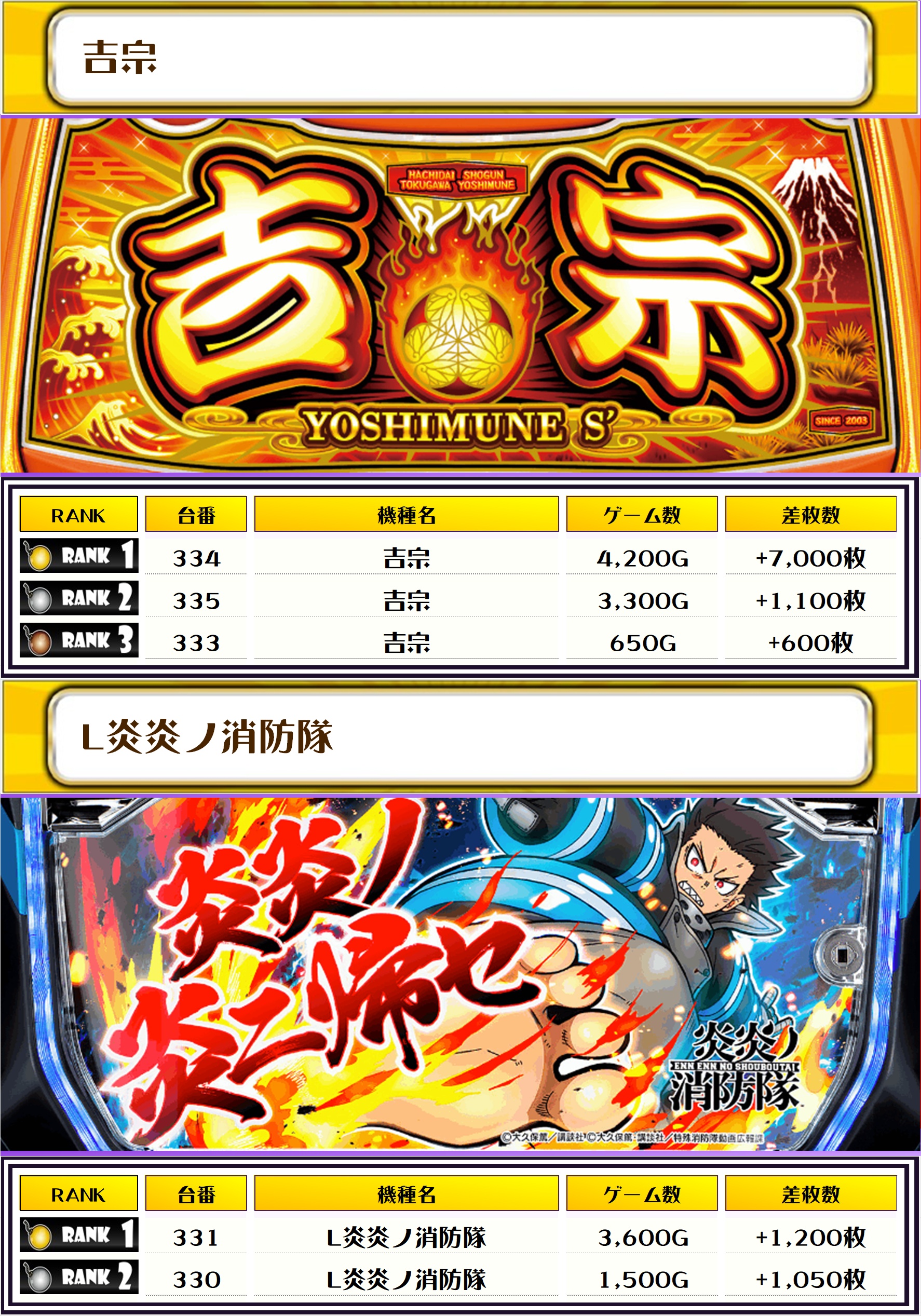 L炎炎ノ消防隊は若干不発気味ですがそれでもしっかりとプラス差枚で着地しているにはさすがですね👌