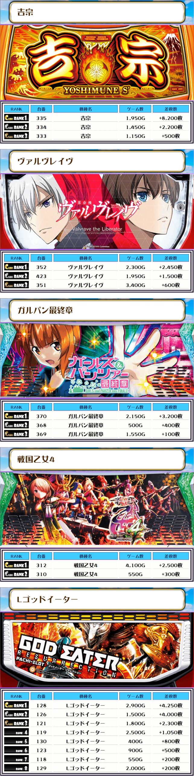 それでは、この日の【機種別差枚ランキング】から見ていくでやんすっ❗️