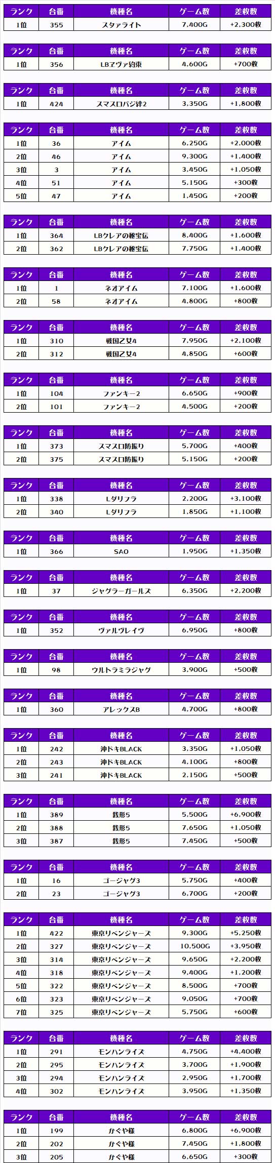 それでは、この日の【機種別差枚ランキング】を見ていきましょう❗️