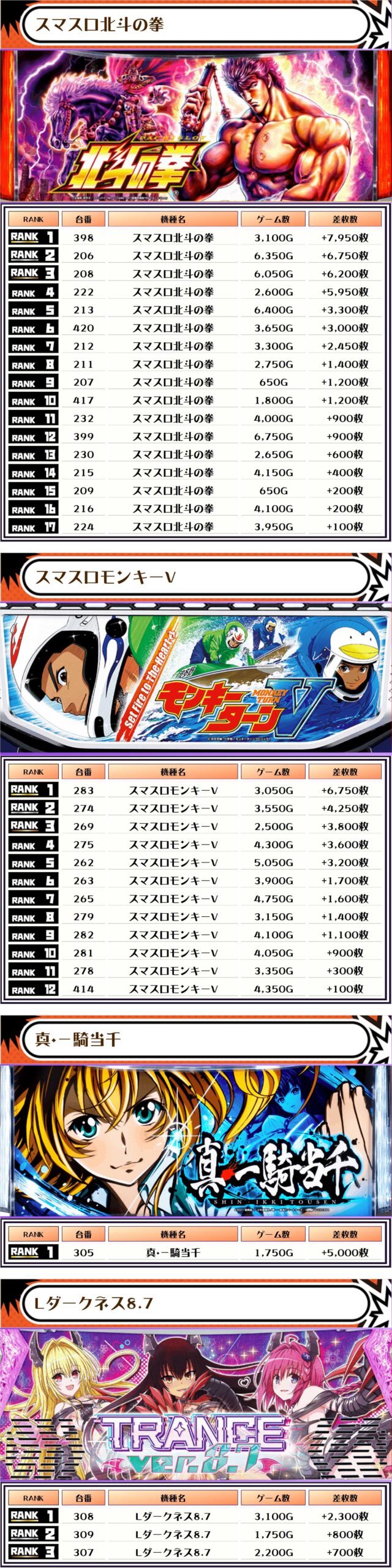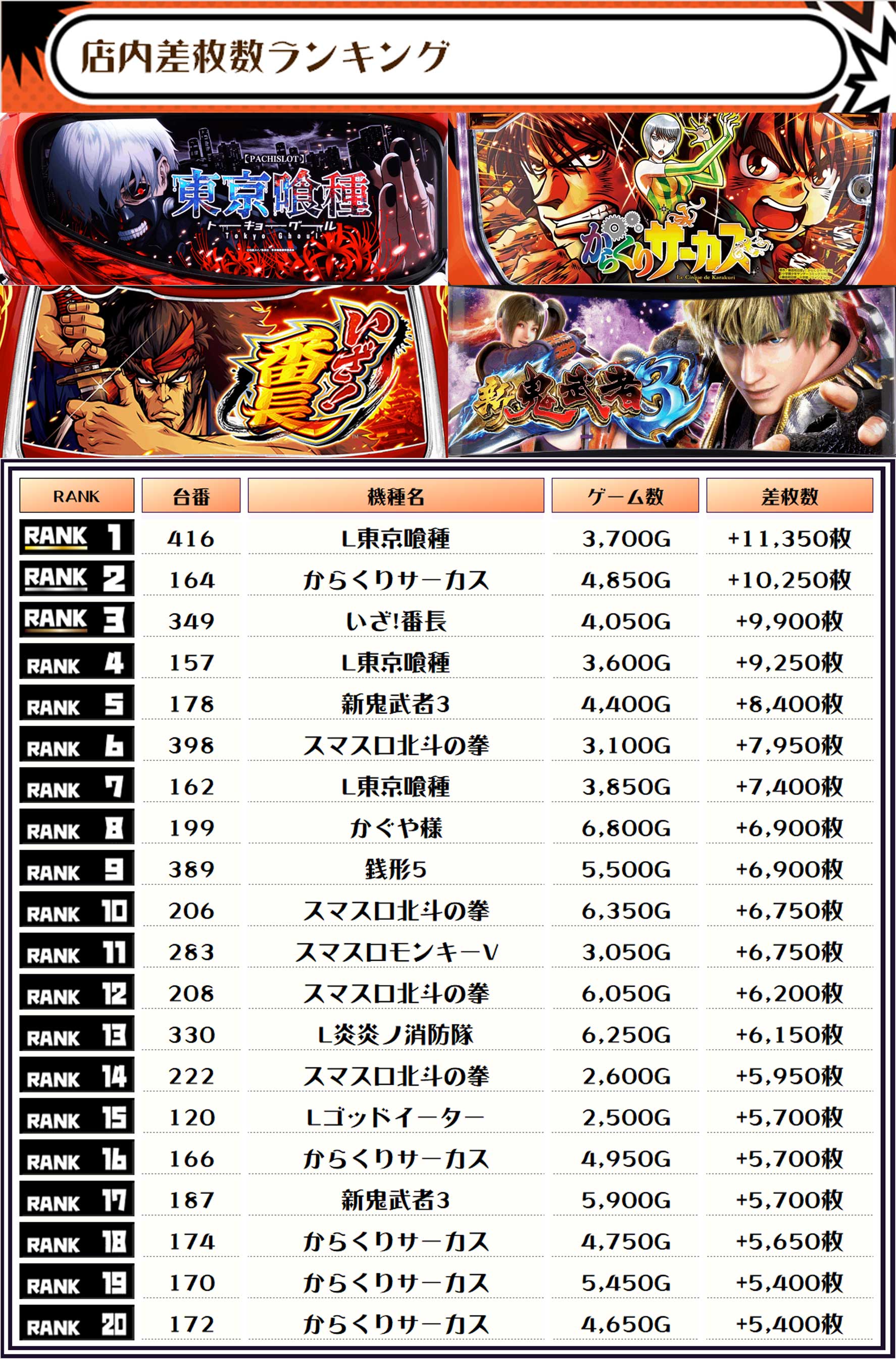 今回のランキングは万枚オーバー×2、そしてすべて5000枚オーバーという、これ以上ない結果となりました😲