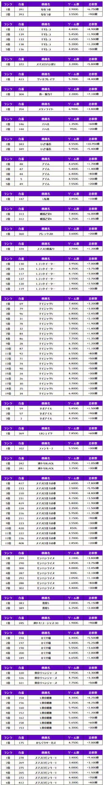 そして、全体の差枚ランキングです🌟