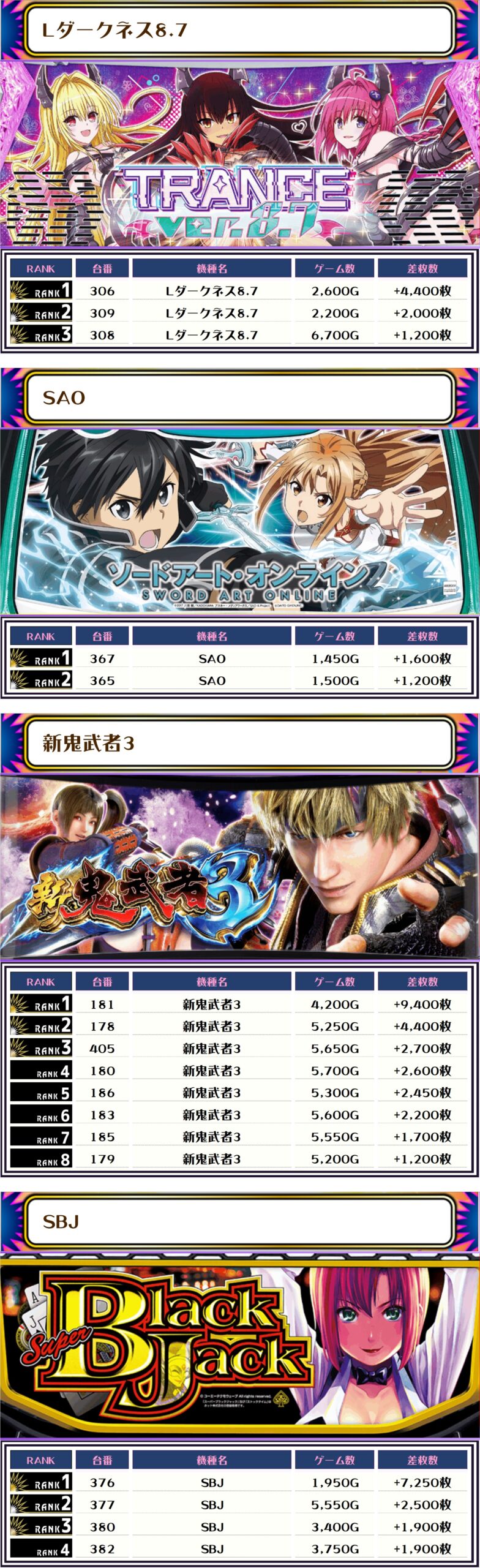 それでは、この日の【機種別差枚ランキング】を見ていきます❗️