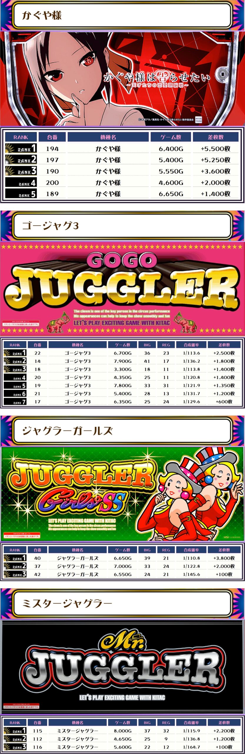 ピックアップ以外でもマイジャグVなんかは結果だけ見ても優秀台がたくさんあった印象です😁