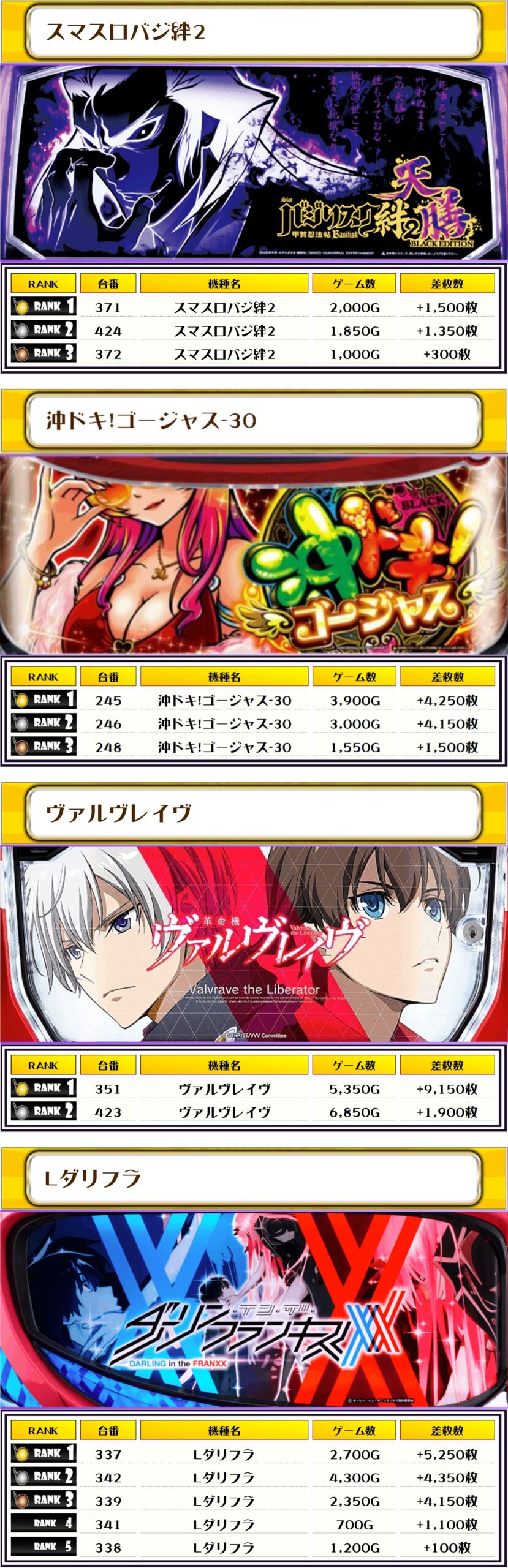 それでは、この日の【機種別差枚ランキング】を見ていくぞ❗️